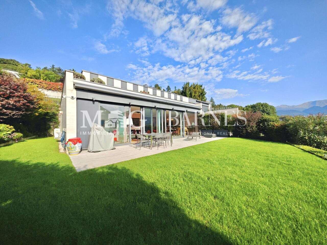 - spacieux séjour - salle à manger, avec de grandes fenêtres et sortie directe sur la terrasse et le jardin à usage exclusif d'où l'on a une vue imprenable sur le lac, la ville et les montagnes environnantes ;