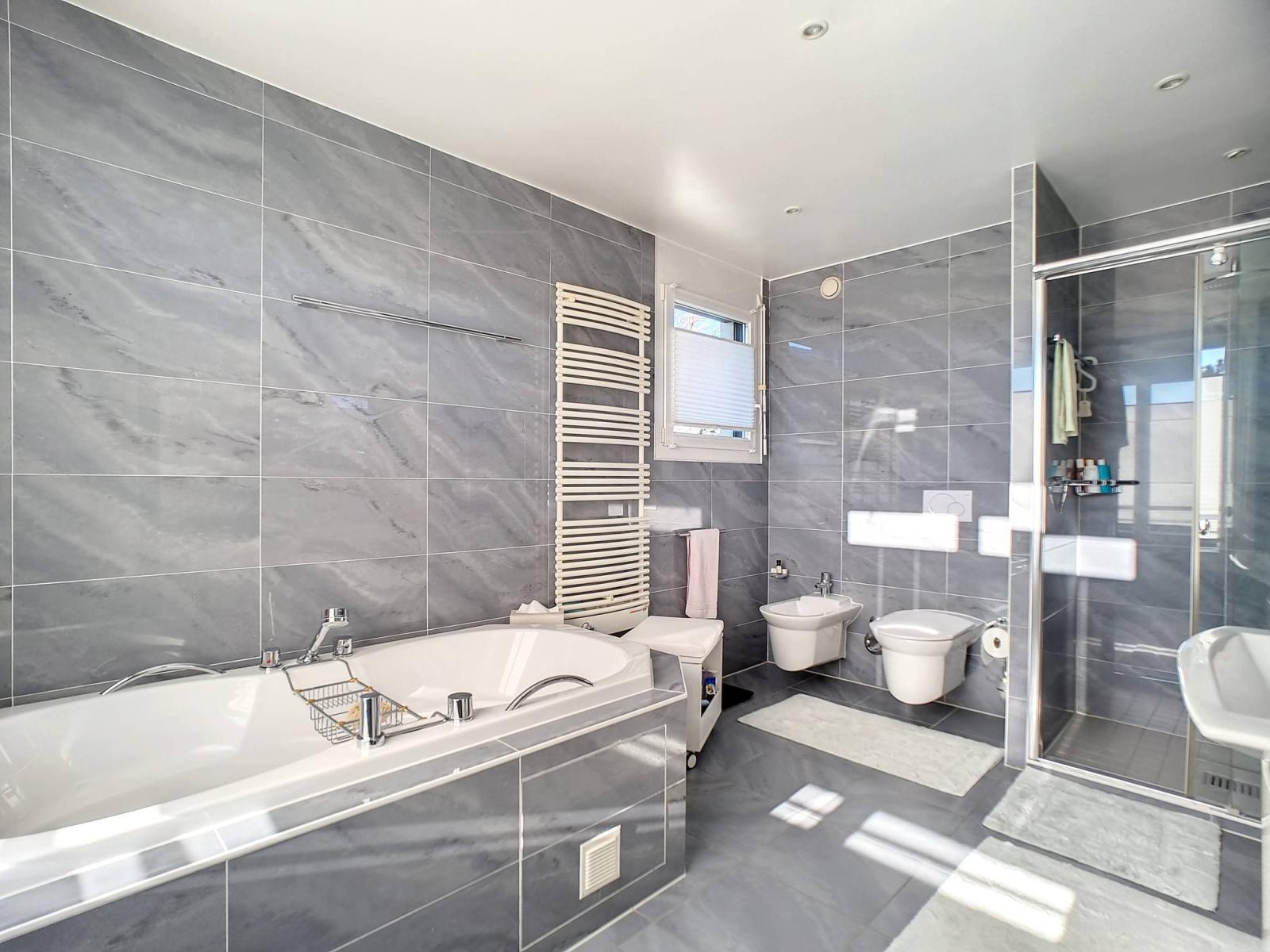 Au delà de l'espace de vie qui représente un vrai luxe d'intimité et de confort, des équipements tels qu'un sauna, une baignoire jacuzzi, raviront les futurs propriétaires. Beaucoup de rangements.