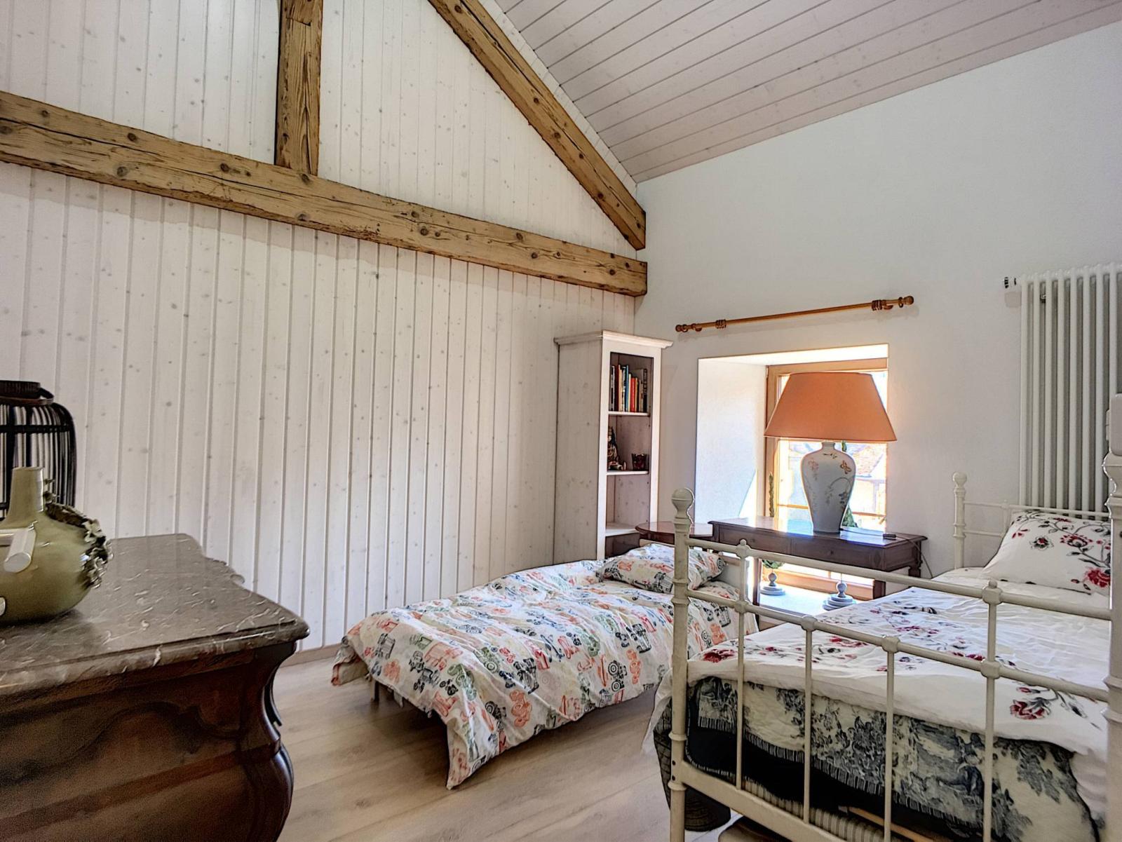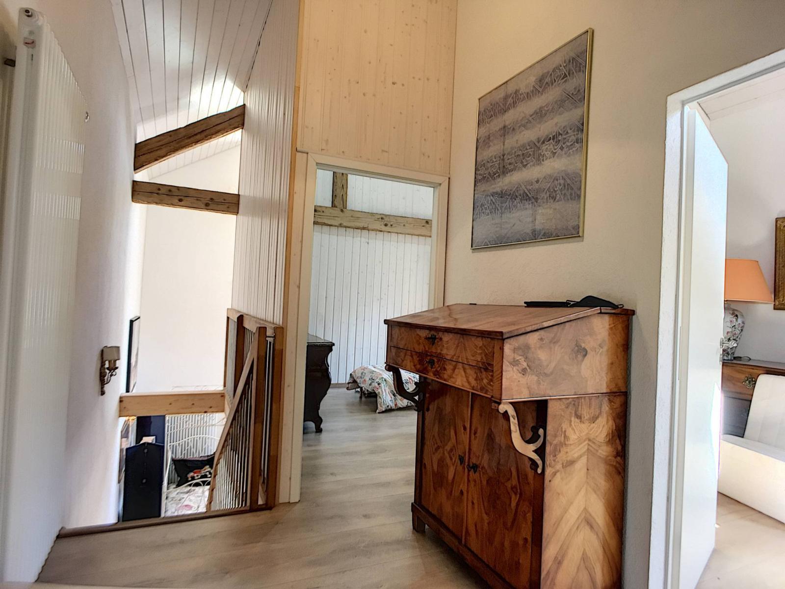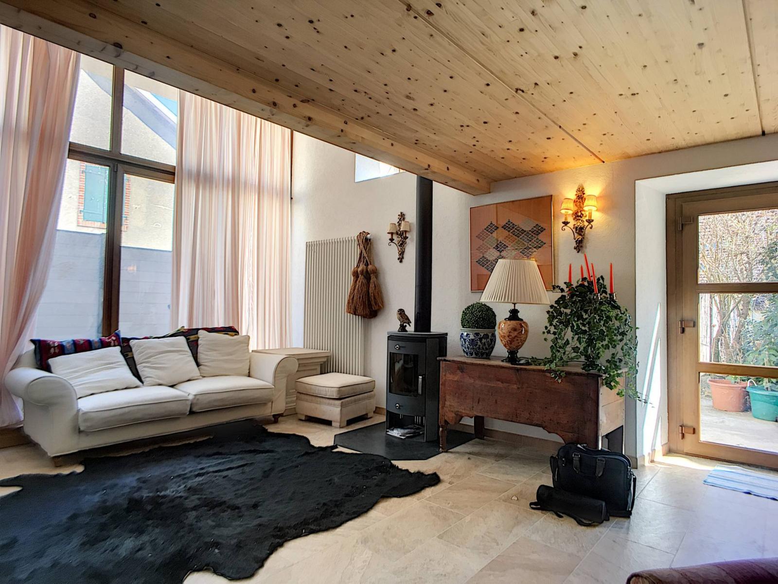 lui confère une ambiance des plus accueillantes. La surface habitable est d'environ 100 m2 et le salon profite d'un poêle suédois et d'une belle hauteur sous plafond d'environ 4 mètres. Belle poutraison apparente pour un cachet indéniable.