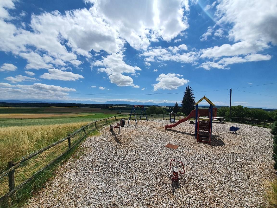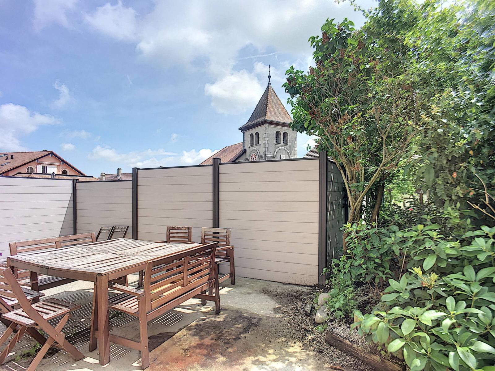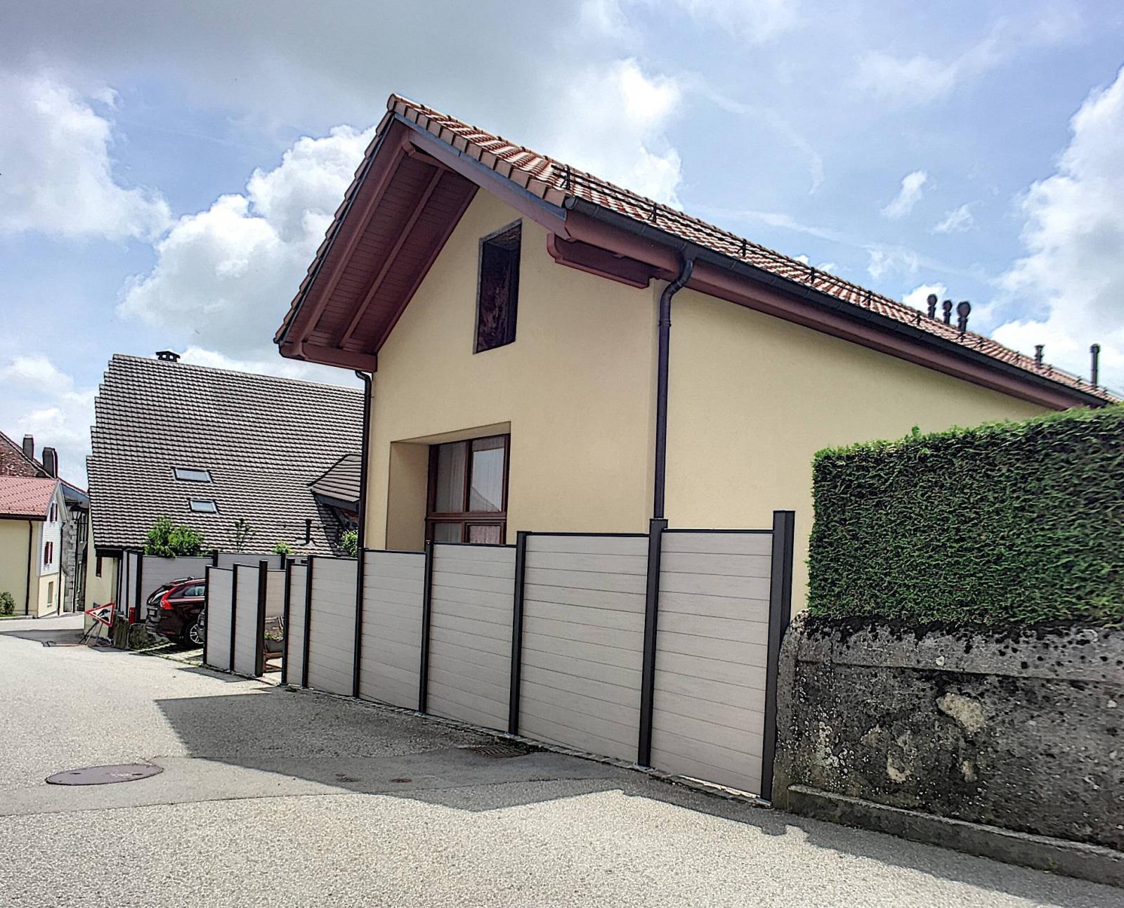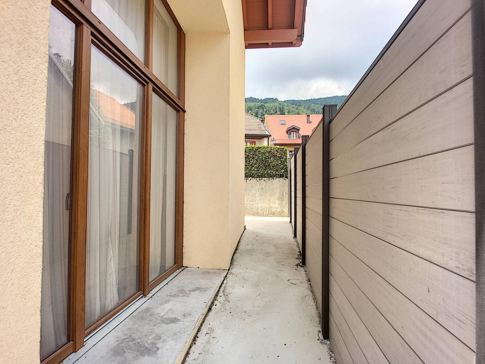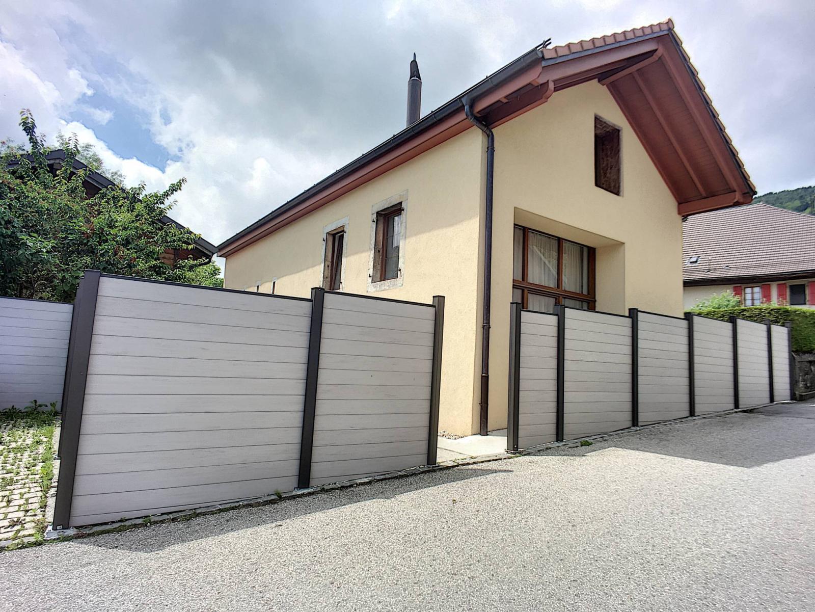 A l'extérieur, deux places de parc à 20 mètres (2 X CHF 10'000.- l'unité en sus du prix de la maison) et une spacieuse terrasse agrémentent ce bien.