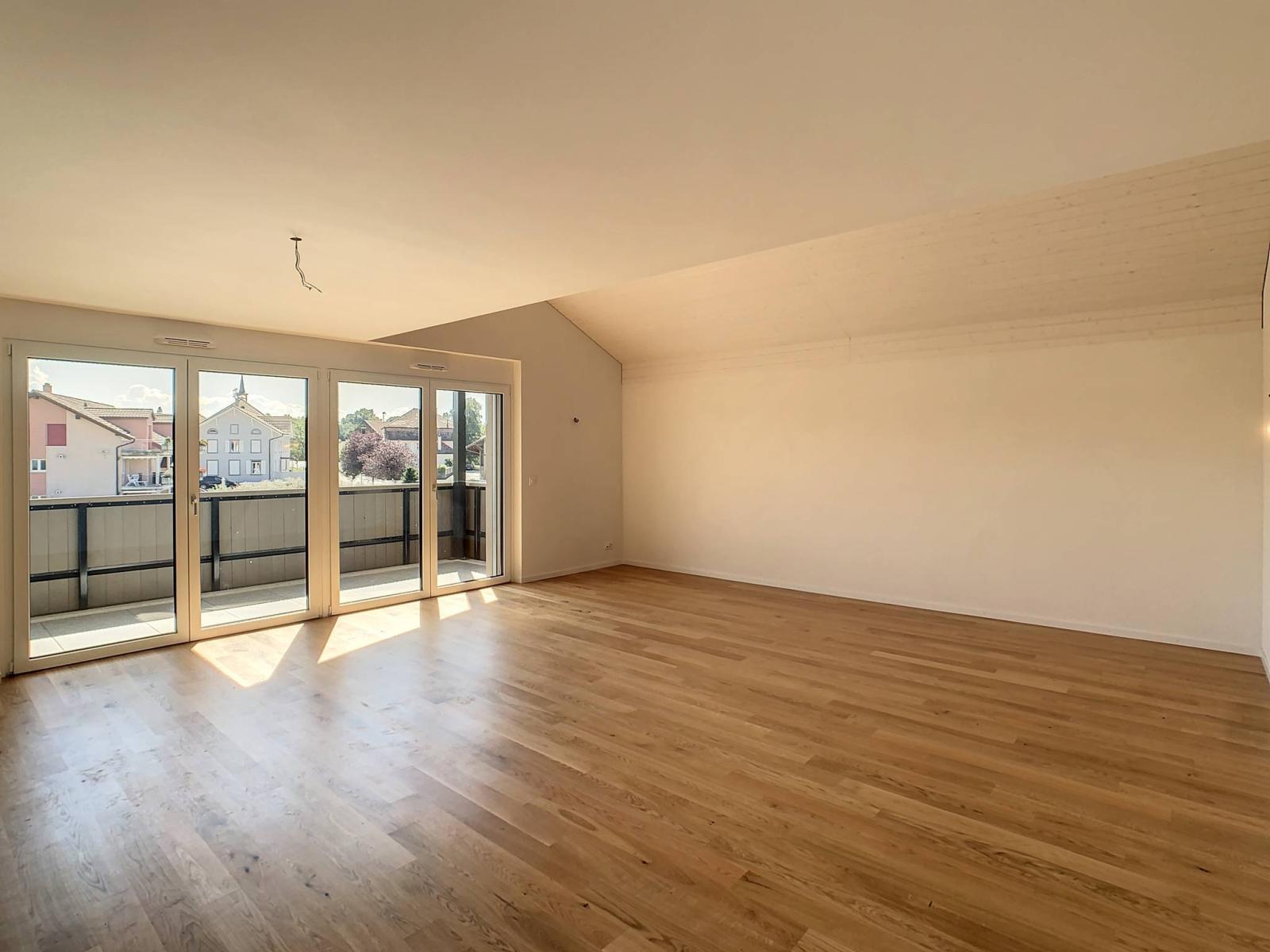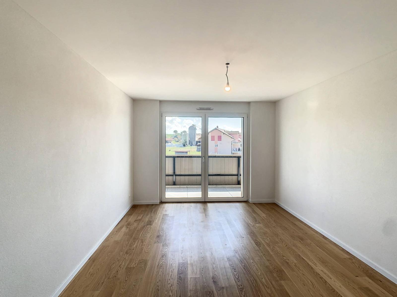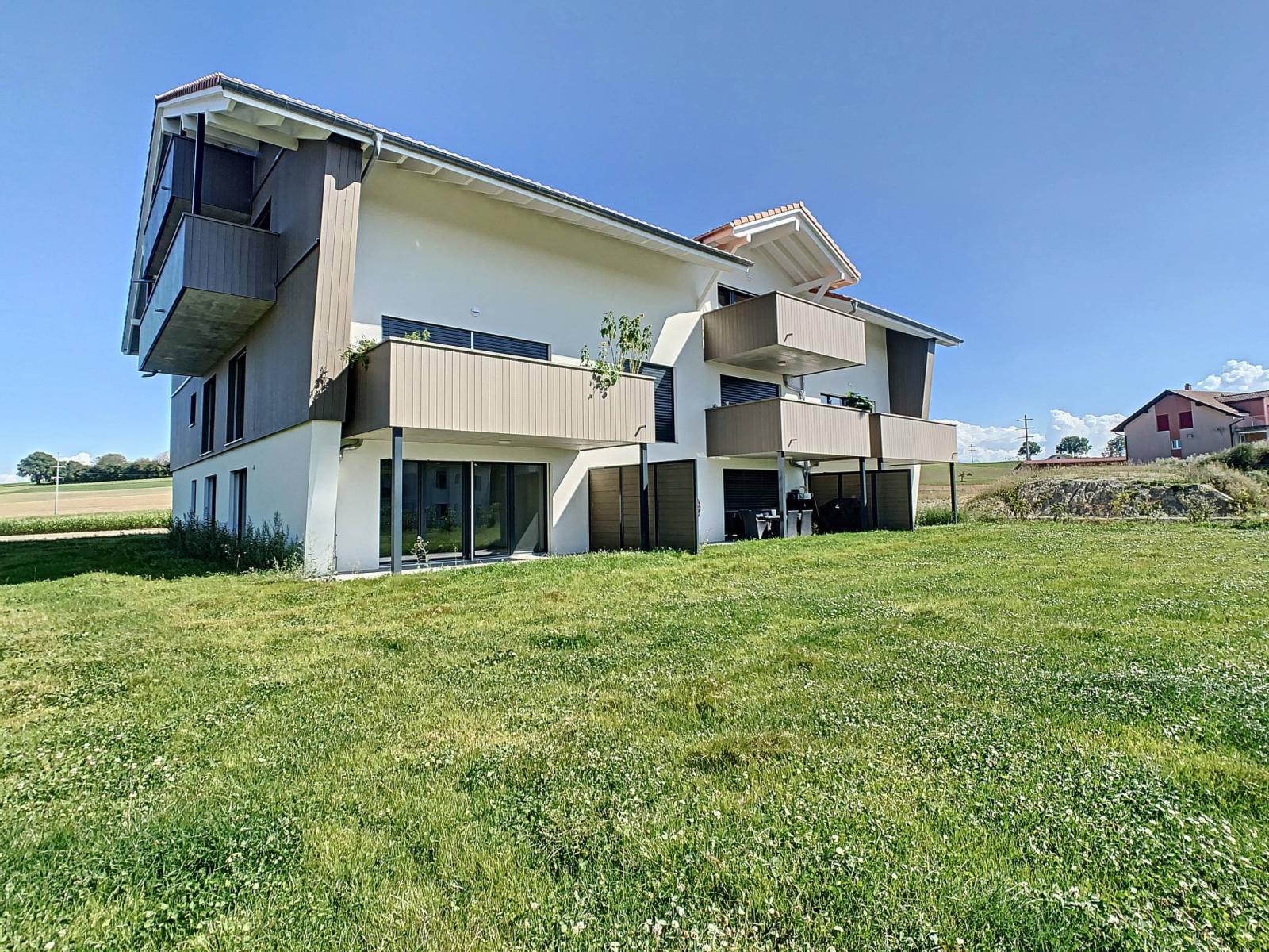 Idéalement située entre Fribourg et Payerne, cet appartement neuf de 3.5 pièces dispose d'une surface habitable de 103 m² et d'un balcon de 14 m² totalisant ainsi une surface pondérée d'environ 110 m². Il propose un cadre de vie idyllique alliant la proximité des 2 villes tout en bénéficiant d’un environnement verdoyant, en bordure de zone agricole.