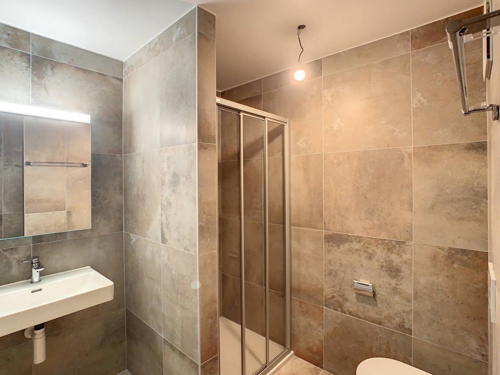 Une cave et une place de parc intérieure (en sus.) complètent ce bien.