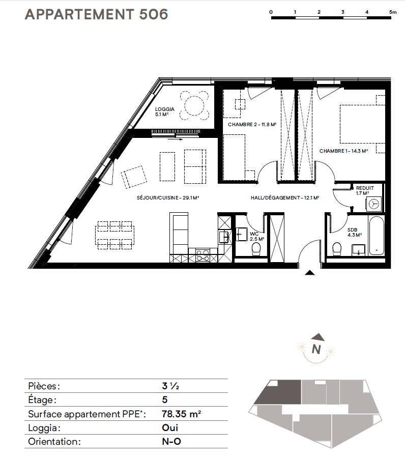 3.5 pièces sis 5ème étage - Lot N°506