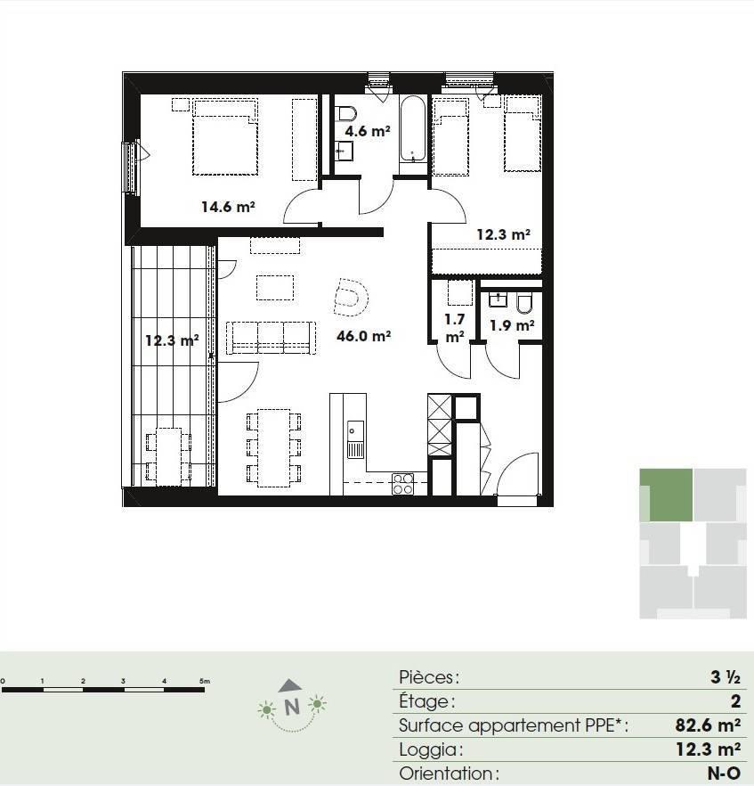 3.5 pièces sis 2ème étage - Lot n° E2.1
