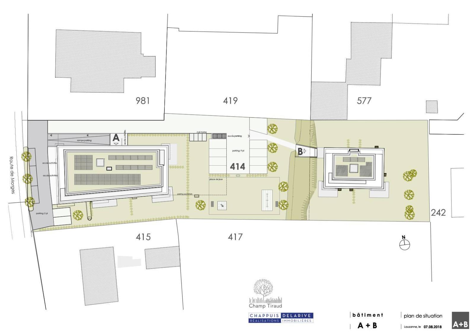 Le projet tient compte des orientations, des dégagements visuels et des contraintes du lieu pour définir les différentes typologies, qui vont du 2.5 au 4.5 pièces. Tous les appartements présentent des balcons orientés majoritairement au Sud. Des attiques avec des grandes terrasses viennent couronner chacun des deux immeubles.