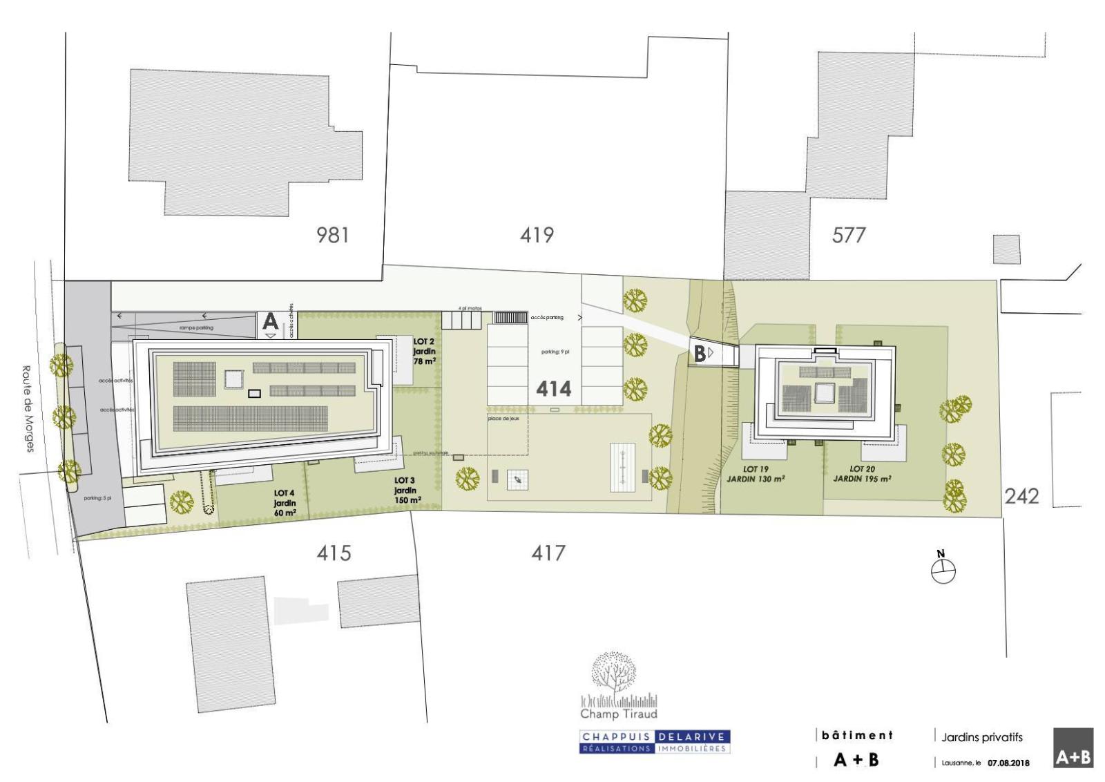 Le projet tient compte des orientations, des dégagements visuels et des contraintes du lieu pour définir les différentes typologies, qui vont du 2.5 au 4.5 pièces. Tous les appartements présentent des balcons orientés majoritairement au Sud. Des attiques avec des grandes terrasses viennent couronner chacun des deux immeubles.
