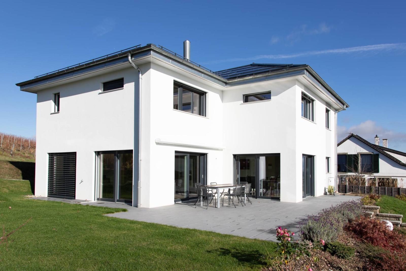 Elle profite des dernières normes SIA de construction et d'une qualité de prestations de standing (isolation, système de chauffage PAC géothermique donc économique et dans le sens du développement durable, techniques, panneaux solaires).