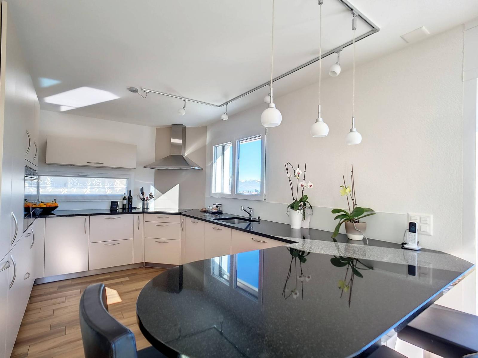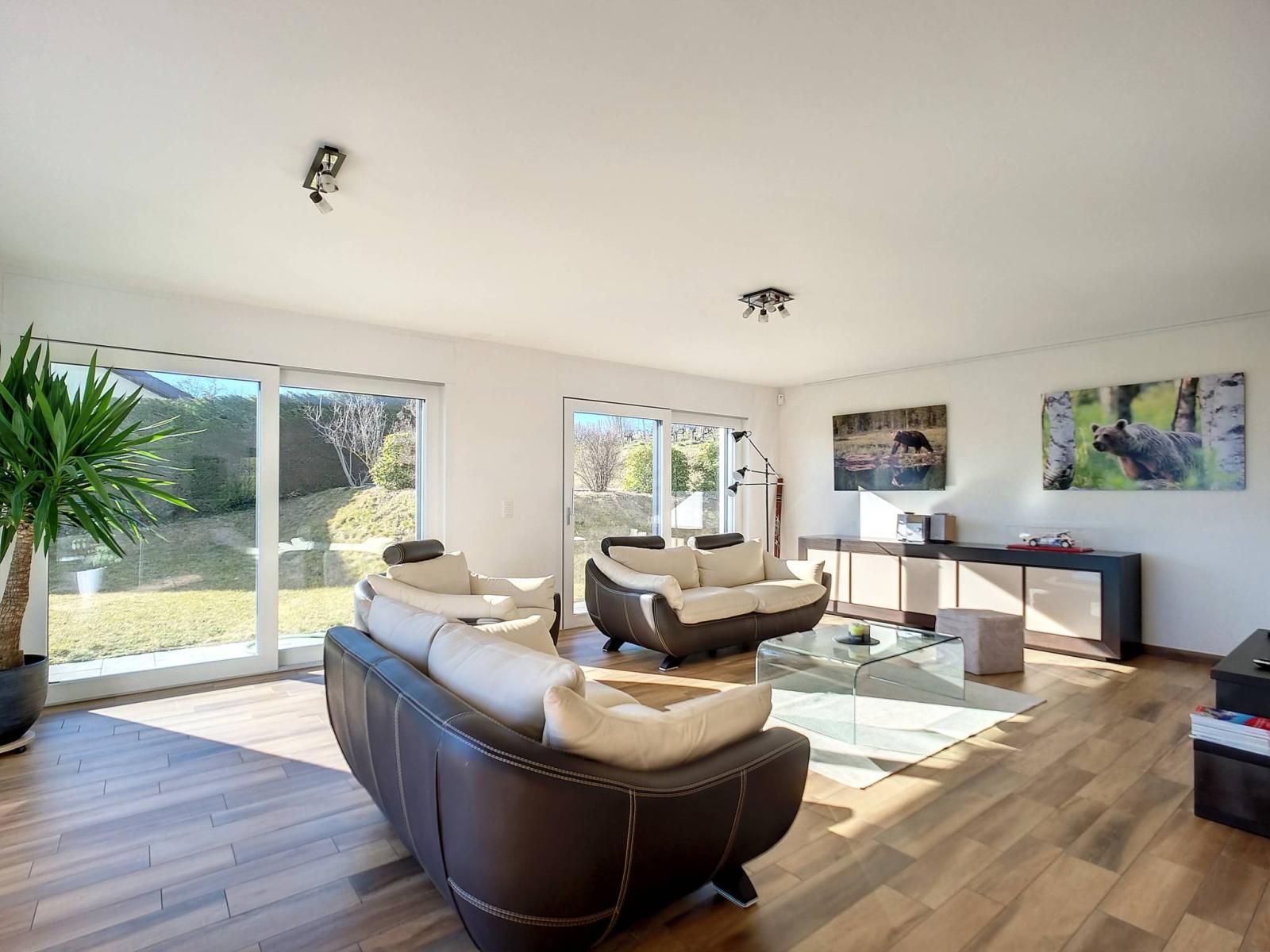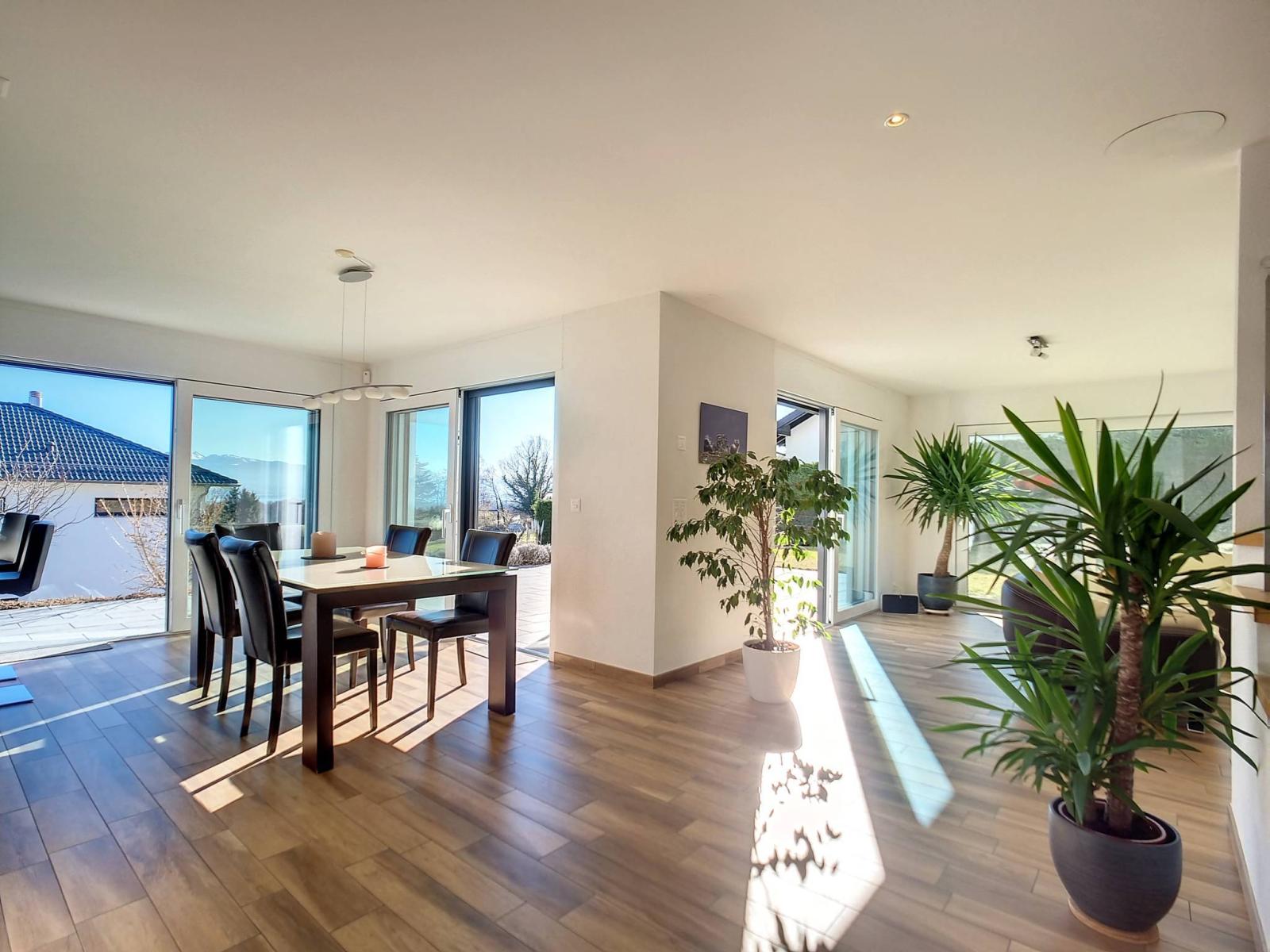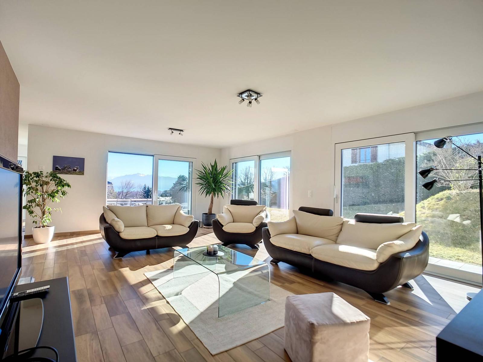 C'est un cadre de vie familial idéal et résidentiel. En effet, l 'emplacement est privilégié, avec la vue sur les vignes, sur le majestueux château de Vufflens ou encore plus abondamment : Sur le lac et la verdure. D'ailleurs, l'exposition Sud et les baies vitrées rendent le séjour très lumineux.