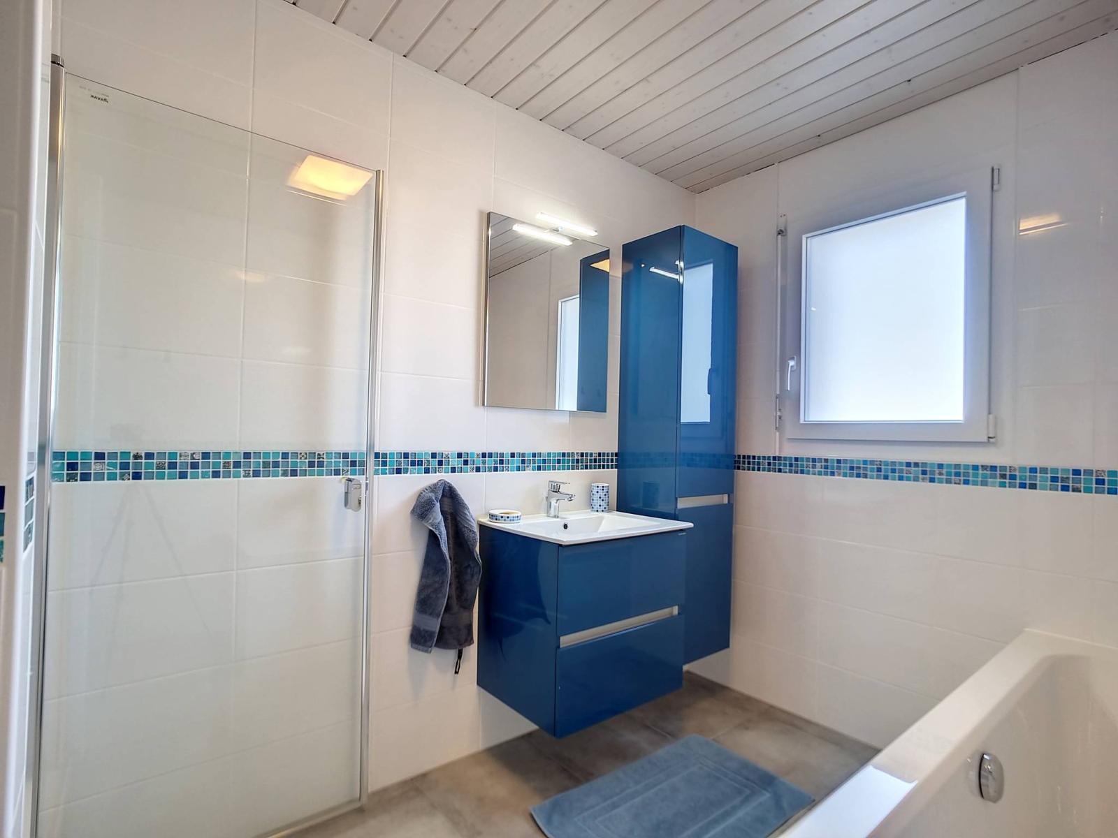 Outre le garage double (prise électrique pour voiture), il y a deux places de parc extérieures et encore la possibilité de se stationner devant le garage ou devant l'entrée de la maison.