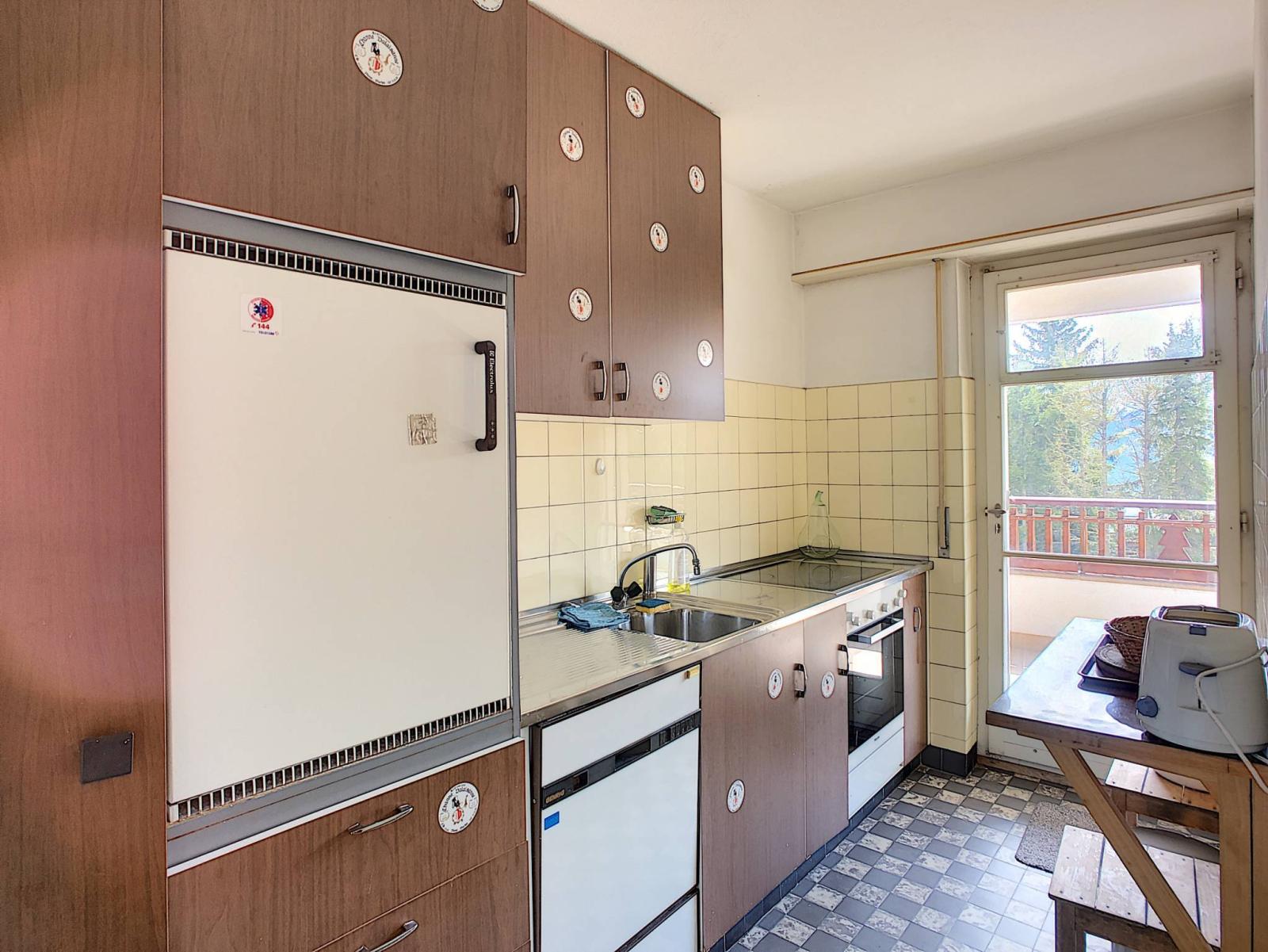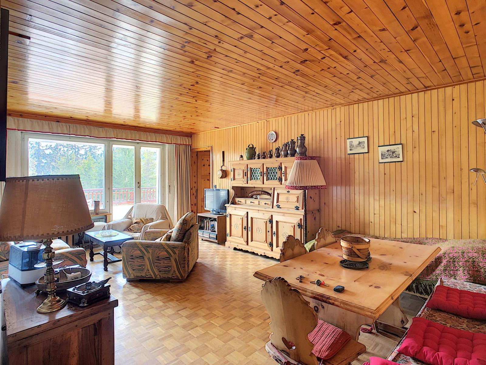 L'appartement, dont toutes les pièces à vivre donnent sur le balcon Sud, est lumineux et spacieux. Il est également vendu avec une chambre de service, un casier à skis, une cave et un garage box chauffé (en sus du prix de vente, mais non obligatoire).