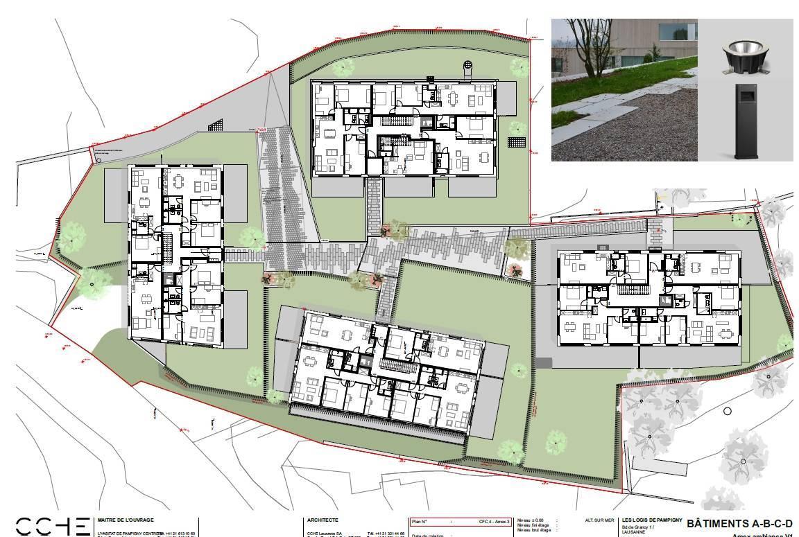 Situés en plein centre du village, proche des commoditées (gare BAM ; Denner ; école ; restaurant ...) Les Logis de Pampigny s'intègrent en parfaite harmonie à l'architecture locale. Le projet tire parti de la topographie du site en allant chercher les ouvertures et les dégagements sur cet environnement magnifique.