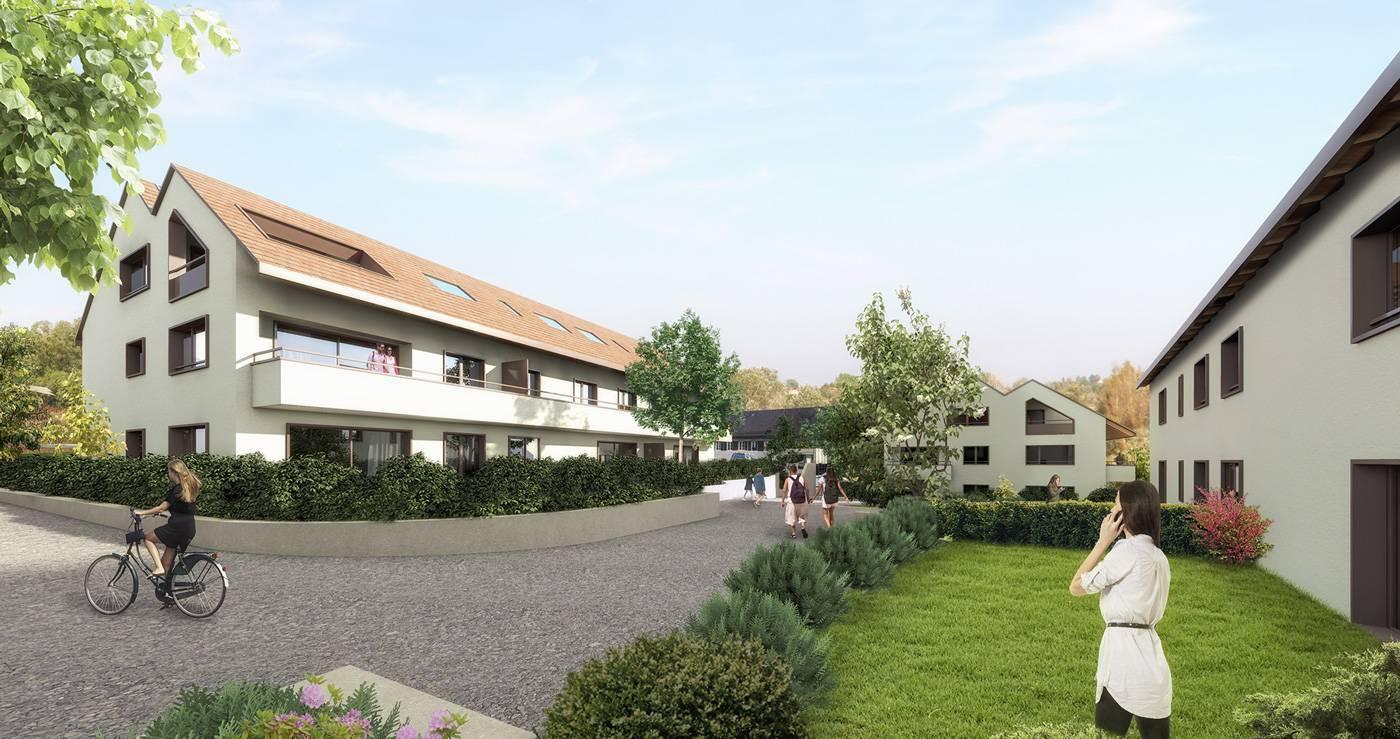 L'ensemble est composé de quatre immeubles à taille humaine . Les 41 logements, allant du studio au 4.5 pièces, offrent des volumes spacieux ainsi que des balcons ou terrasses généreux et un parking sous-terrain complètent le tout (1 place de parcs et une cave concernant ce lot) .