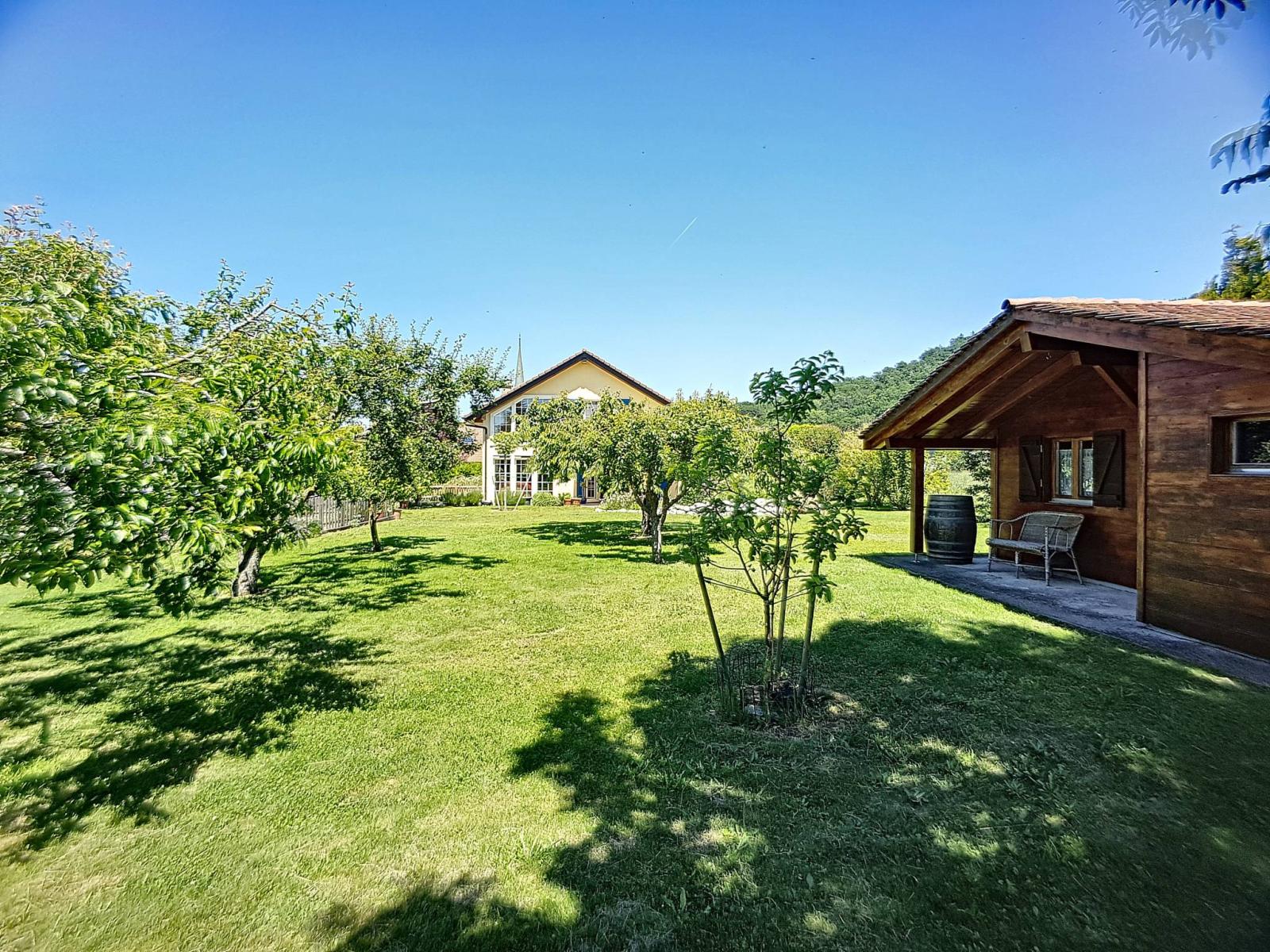 Les extérieurs proposent un magnifique jardin-verger avec potager entretenu avec grand soin, un cabanon-carnotzet, une belle terrasse ombragée avec un barbecue, un couvert à voitures ainsi que plusieurs place de parc extérieures.