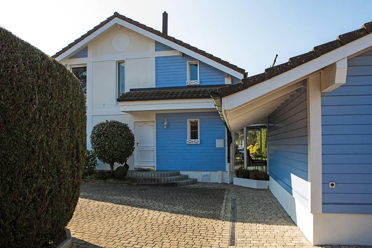 Cette superbe villa familiale en ossature bois, construite en 1999/2000, a été rénovée avec goût et matériaux de qualité en 2006 et 2011.