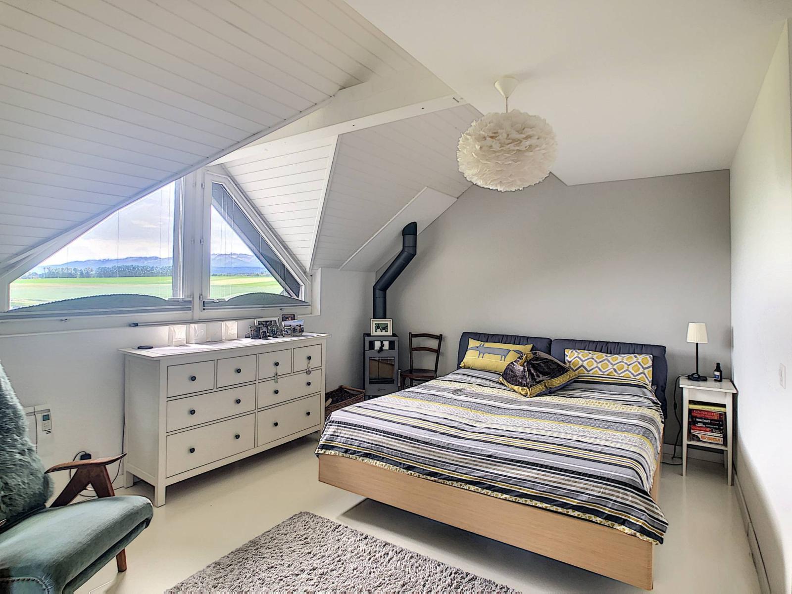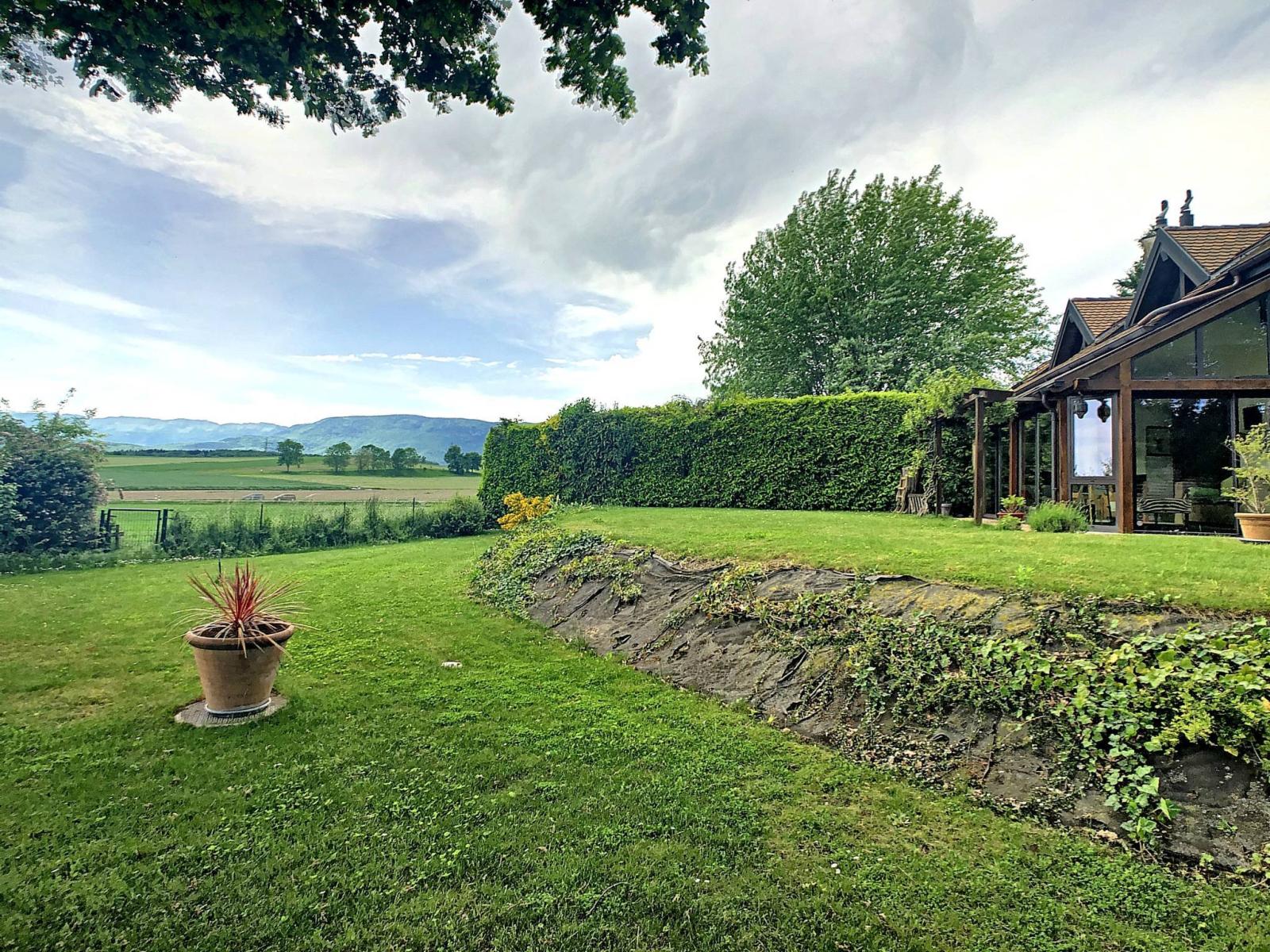 Bénéficiant d'une magnifique vue sur le champs et les montagnes, cette villa saura ravir une famille à la cherche de tranquillité et de luminosité.