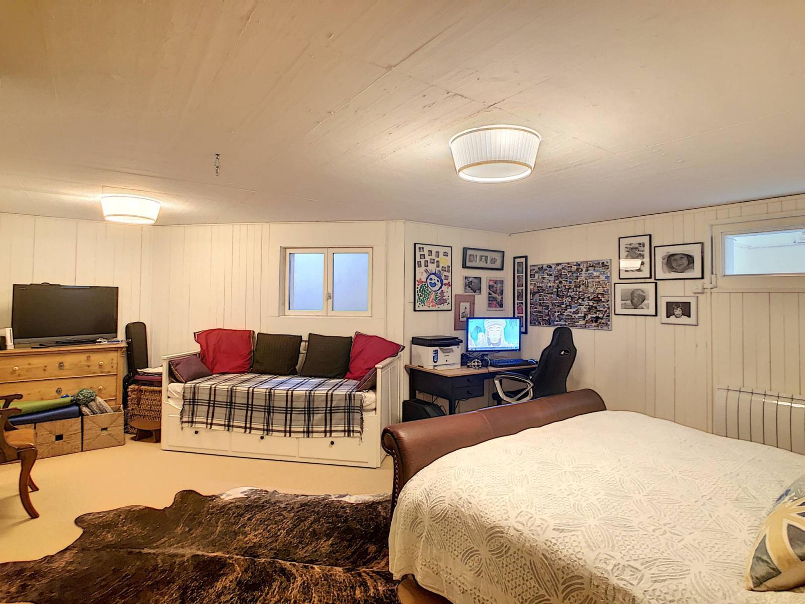 Les combles abritent une vaste chambre avec velux et espace dressing.