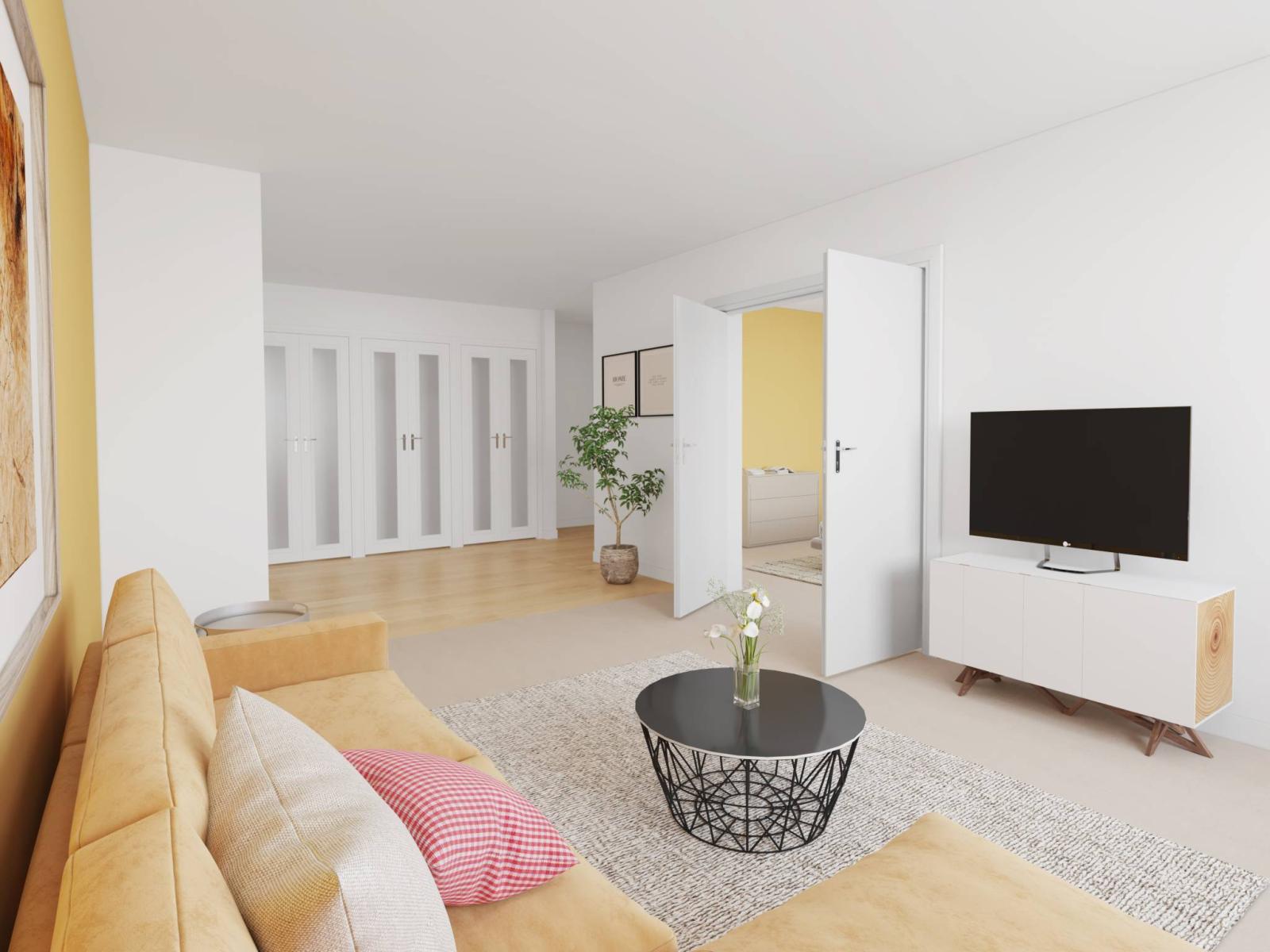 Situé au rez-supérieur avec une orientation Sud-Est, régulièrement entretenu, cet appartement lumineux de 105 m² de surface pondérée bénéficie d’une distribution intérieure optimale qui se présente de la manière suivante :
