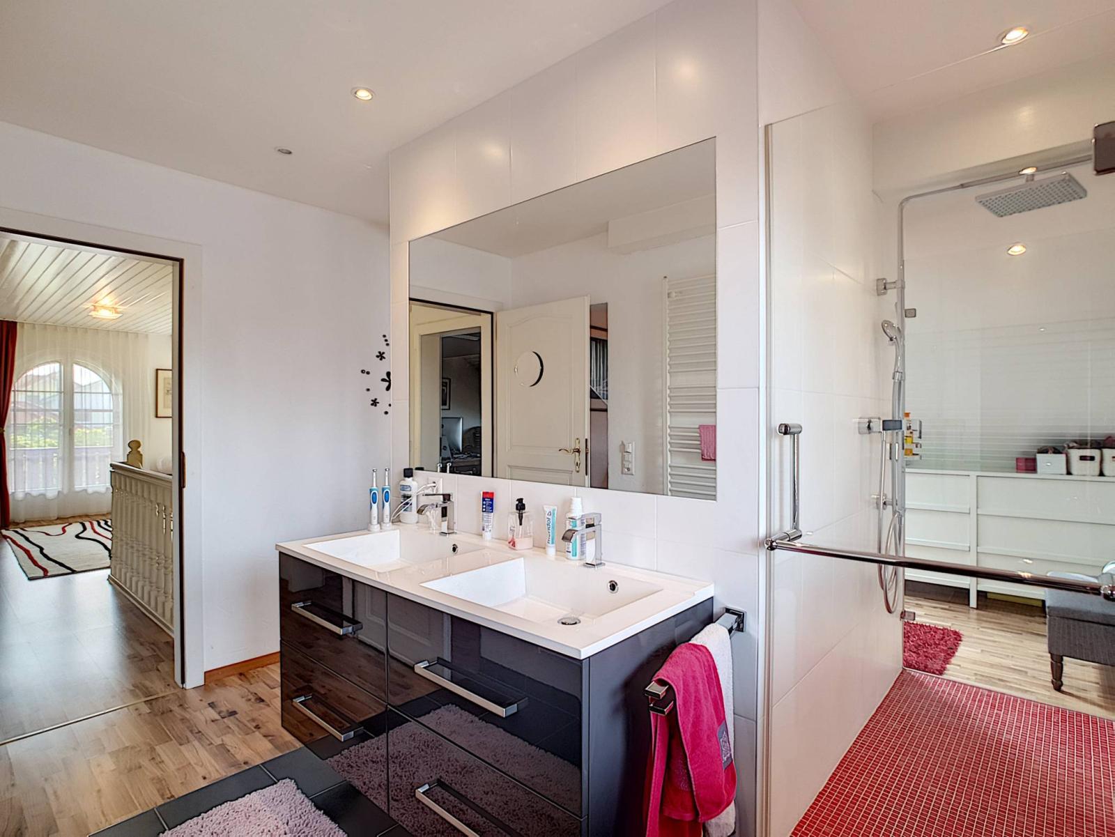 Elle jouit d’une généreuse surface habitable d'environ 260 m² et d’un volume total de 1’545 m³. Répartie sur 2 niveaux + un sous-sol partiellement excavé, elle compte actuellement un double séjour, une grande cuisine équipée d'éléments haut de gamme, 6 chambres à coucher ainsi qu'une magnifique suite parentale avec dressing et salle de douche. Un généreux espace de loisir, proposant un SPA, un coin jeux, une salle de cinéma et un atelier ravira les petits comme les grands.