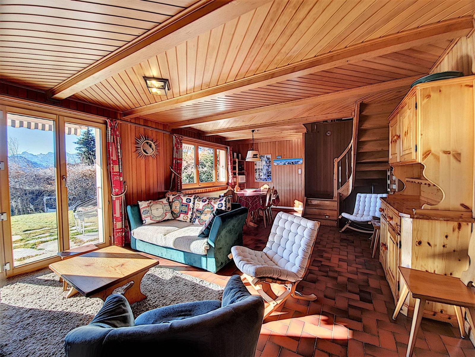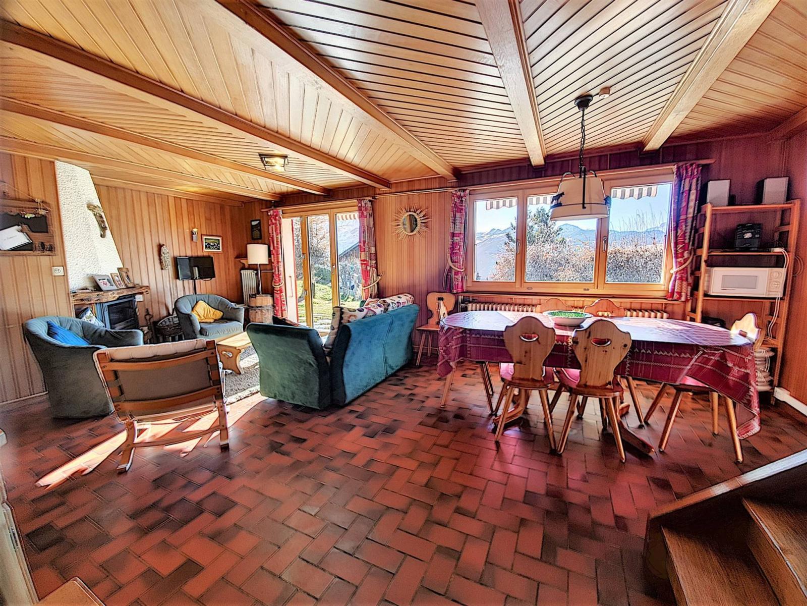 Toutes les pièces du chalet sont bordées par une belle vue sur la station et l'Arc alpin.