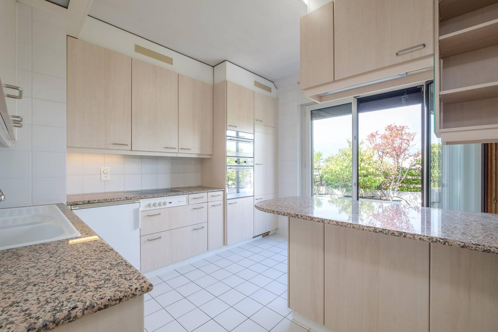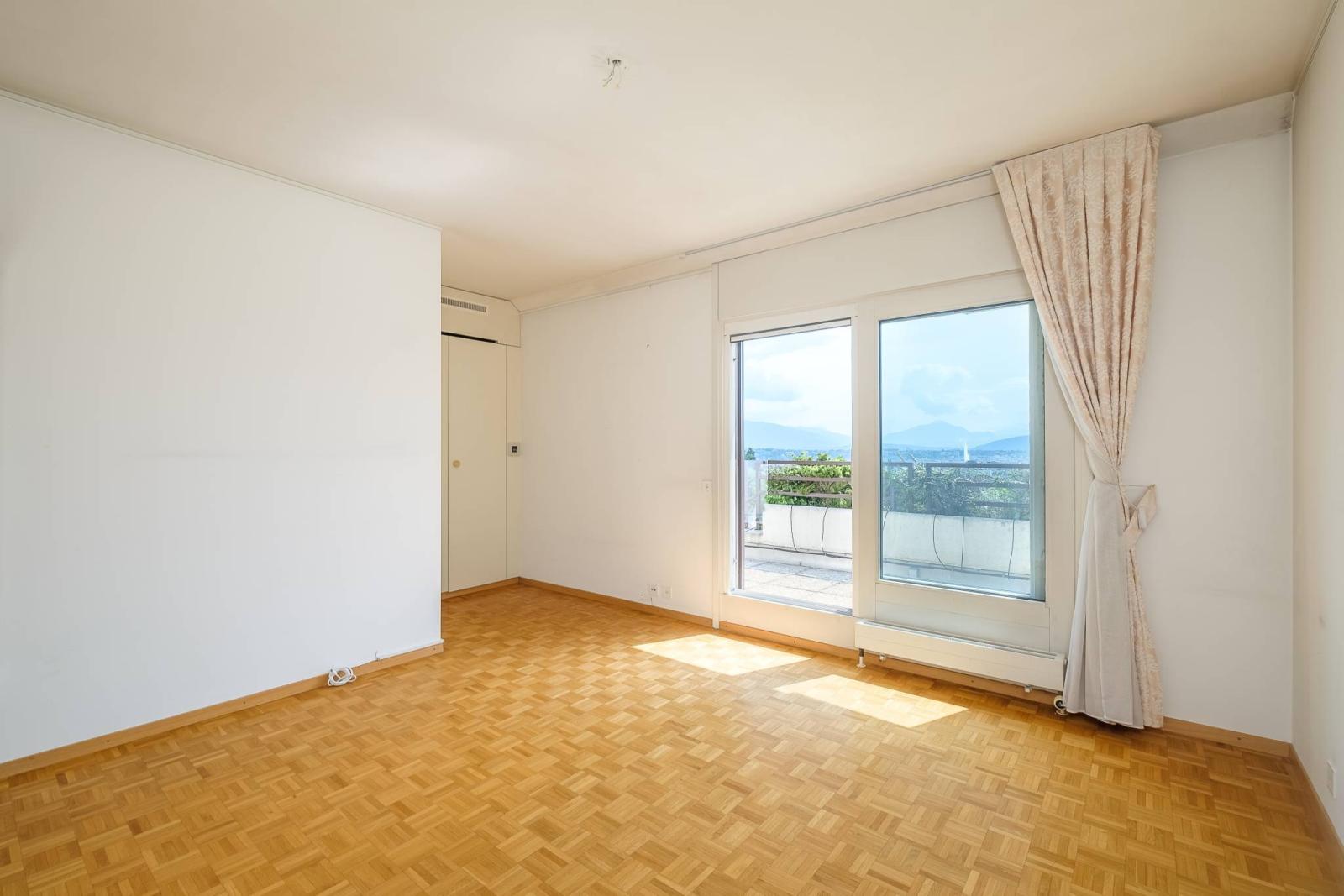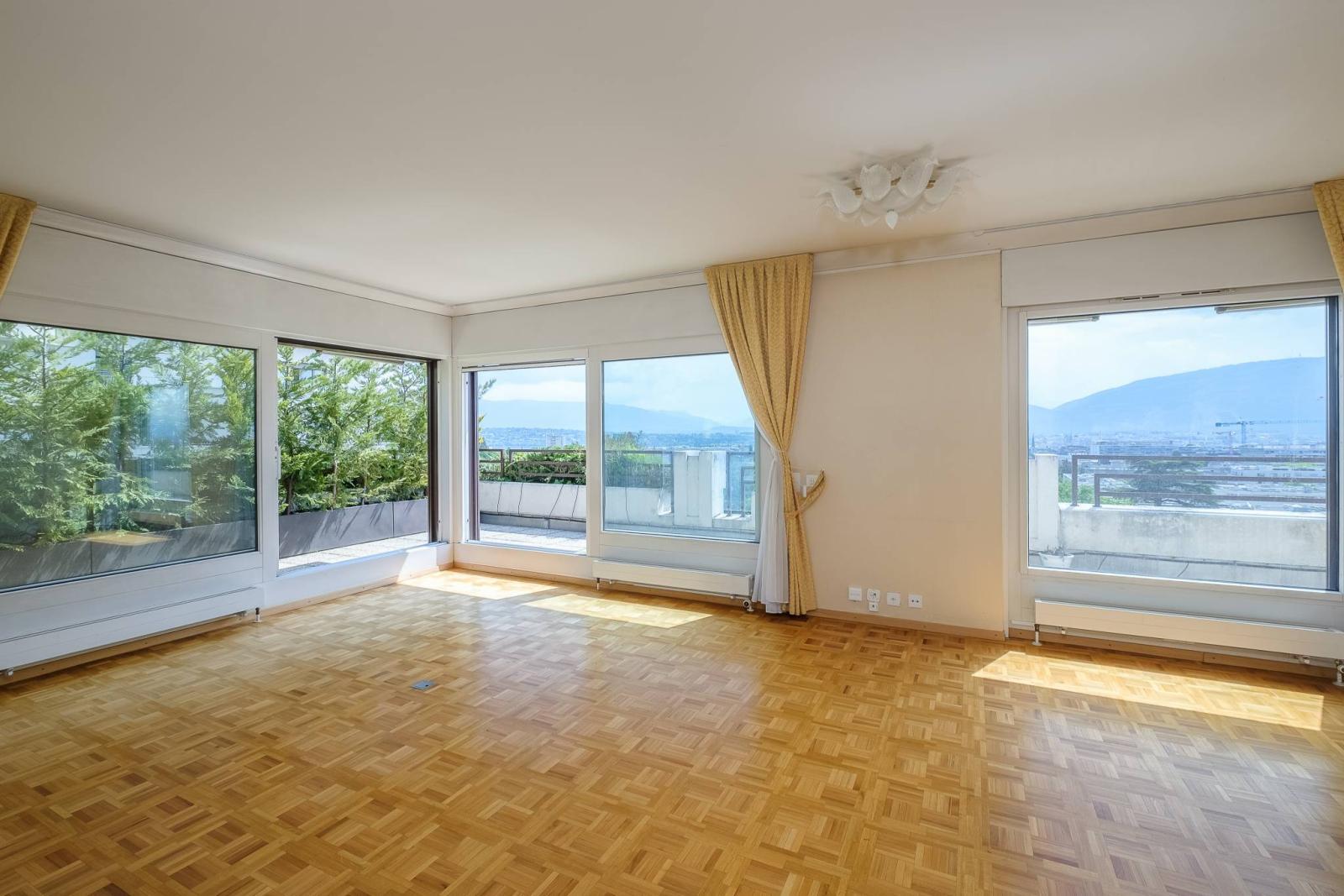 Lumineux et en pignon, l'appartement bénéficie d'une vue panoramique et imprenable sur la ville, les Alpes et le Jet d'eau.