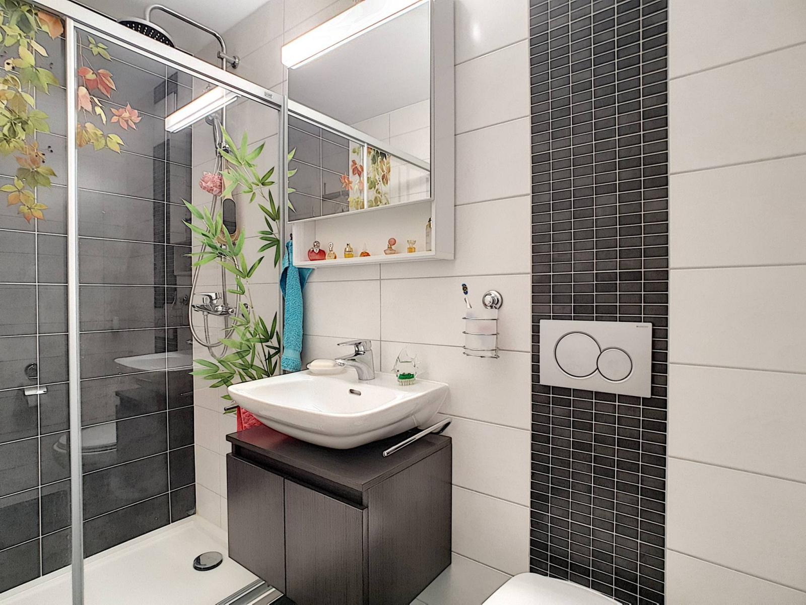 Une cave privée, une buanderie commune ainsi qu'une place de parc intérieure complètent l'ensemble.