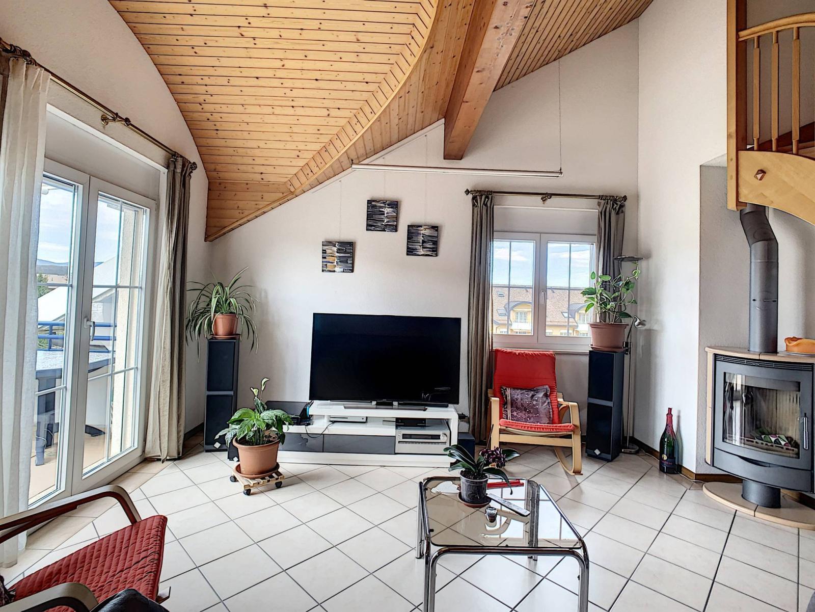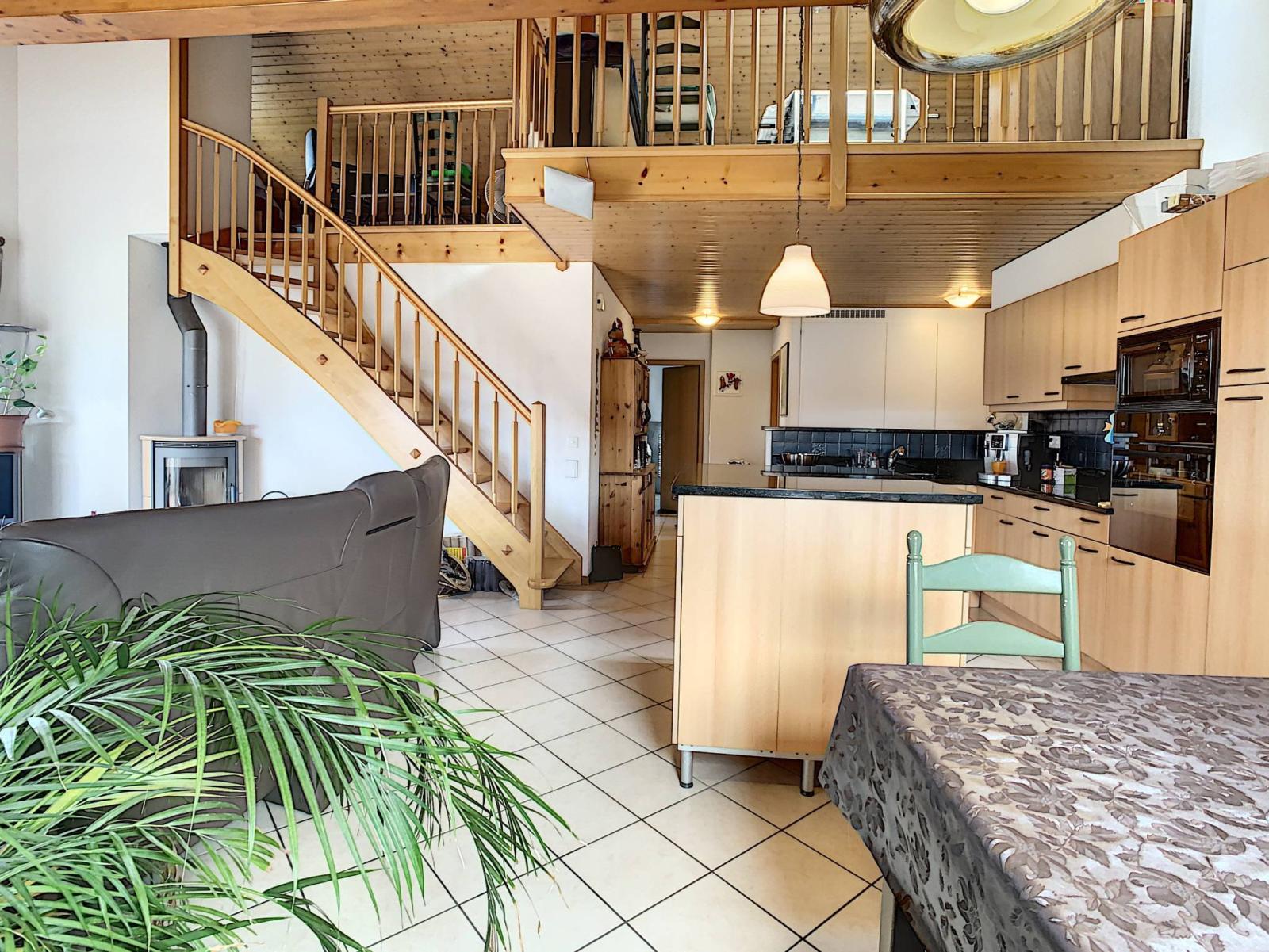 Situé au deuxième et dernier étage (sans ascenseur), cet appartement familial bénéficie d'une surface habitable d'environ 118 m², avec une mezzanine de 40 m² au sol en bonus ! L'appartement jouit d'une luminosité idéale l'après-midi et le soir, avec une orientation Ouest , notamment depuis son confortable balcon de 8.40 m² (avec store électrique). Il a bénéficié d'un entretien soigneux, car c'est sa première revente depuis sa construction. D'ailleurs, la salle d'eau principale est récente, sobre et élégante. Parallèlement les revêtement de sol des chambres ont été changés et la cuisine vient d'être refaite (peinture ; plan en granit ...). Le séjour est une pièce "coup de cœur" avec la baie vitrée du balcon et le poêle suédois très cosy.