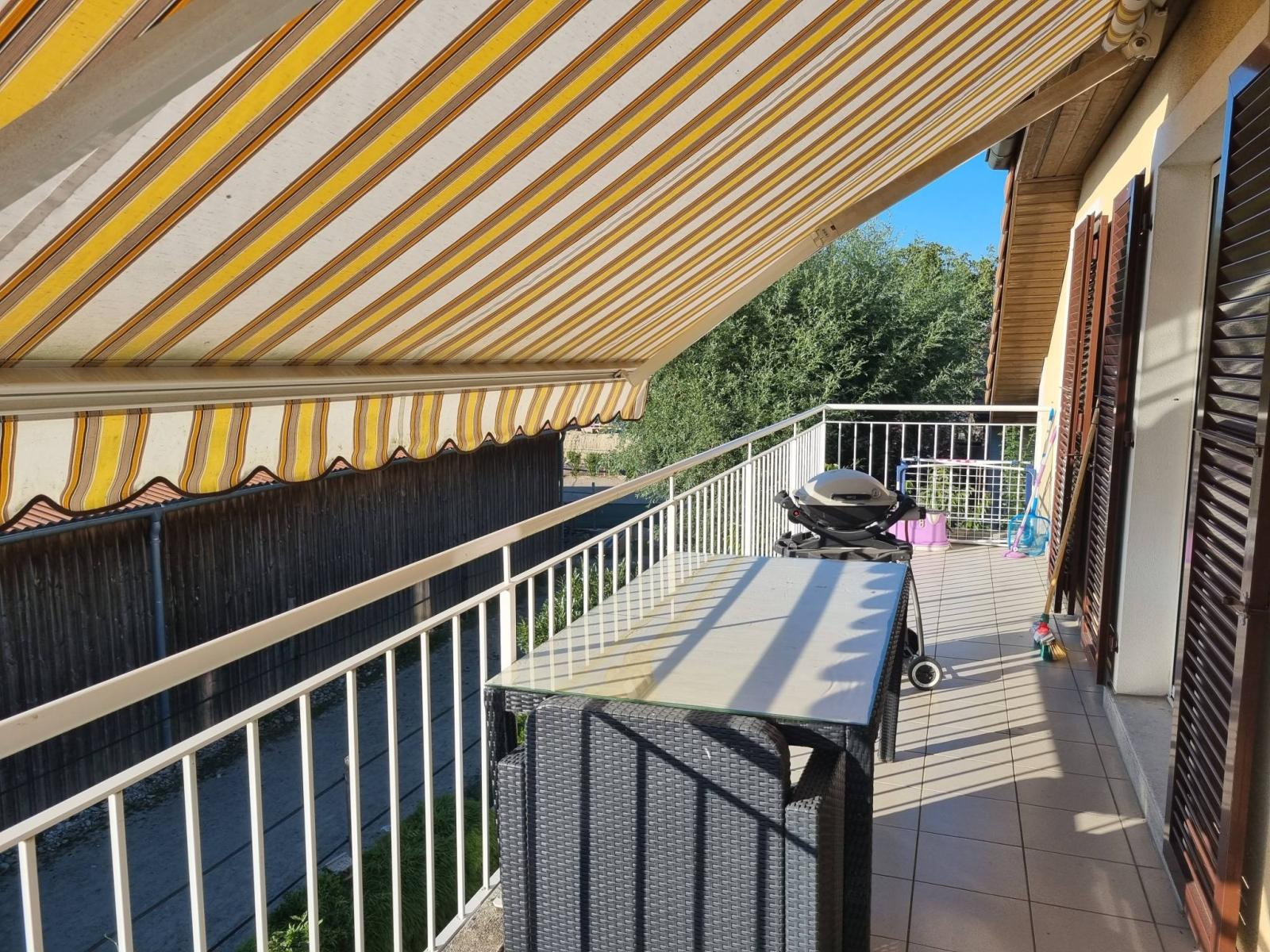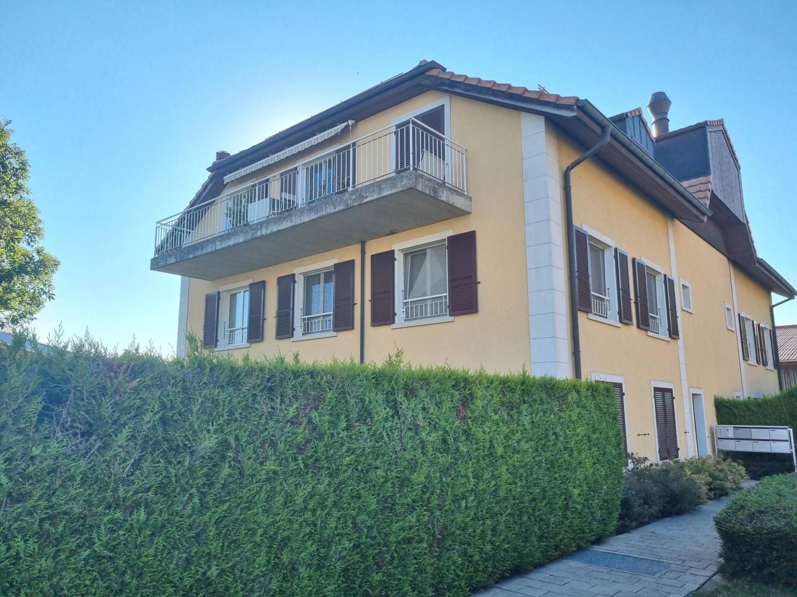 Prenant place au deuxième et dernier étage d'un petit immeuble de 6 copropriétaires, cet appartement est idéal pour une famille recherchant le calme de la campagne avec toutes les commodités (école et crèche à proximité immédiate, Denner, épicerie, boulangerie, restaurant et transports publics) tout en restant à 15min de Morges
