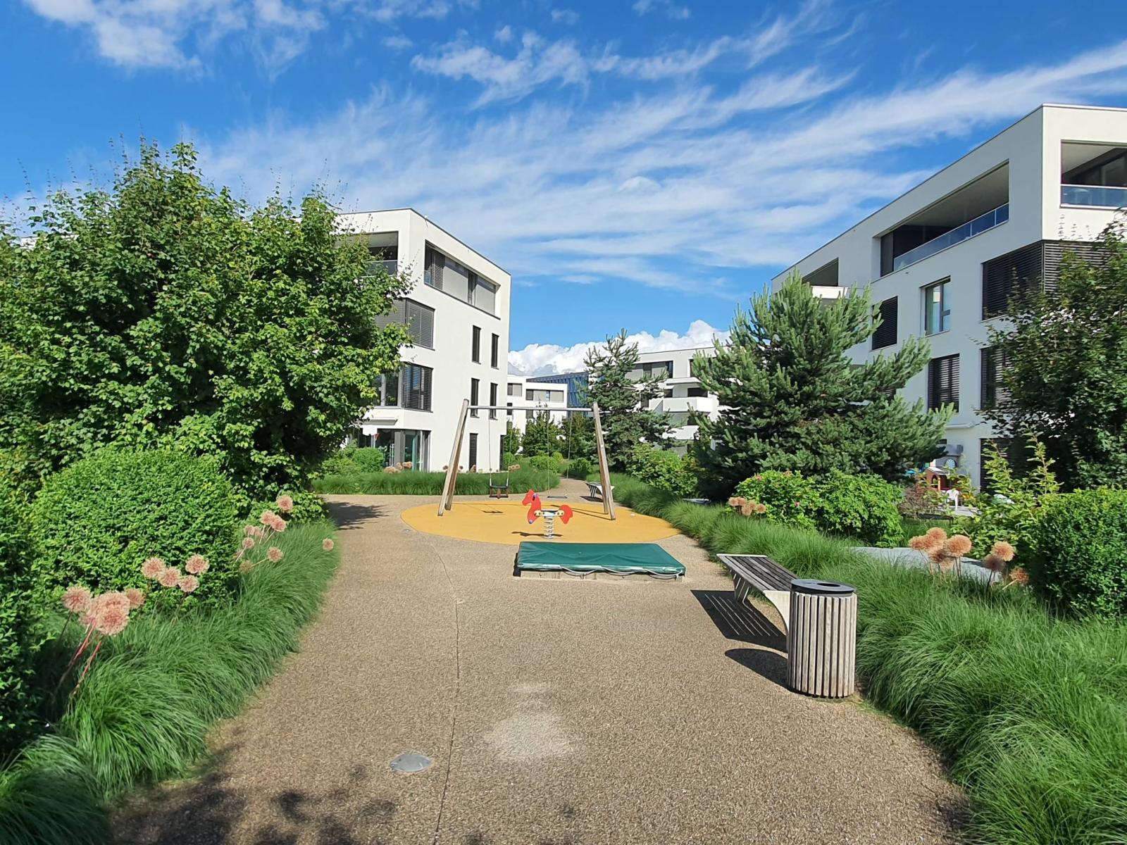 La PPE se veut familiale, avec des espaces verts et places de jeux pour enfants. Cependant, c'est un endroit stratégique (proche de Lausanne, de l'EPFL) qui peut correspondre comme bien de rendement, première acquisition ou pied à terre dans la région. La copropriété est aussi équipée d'une buanderie commune, d'un parking visiteurs, et d'un emplacement pour vélos.