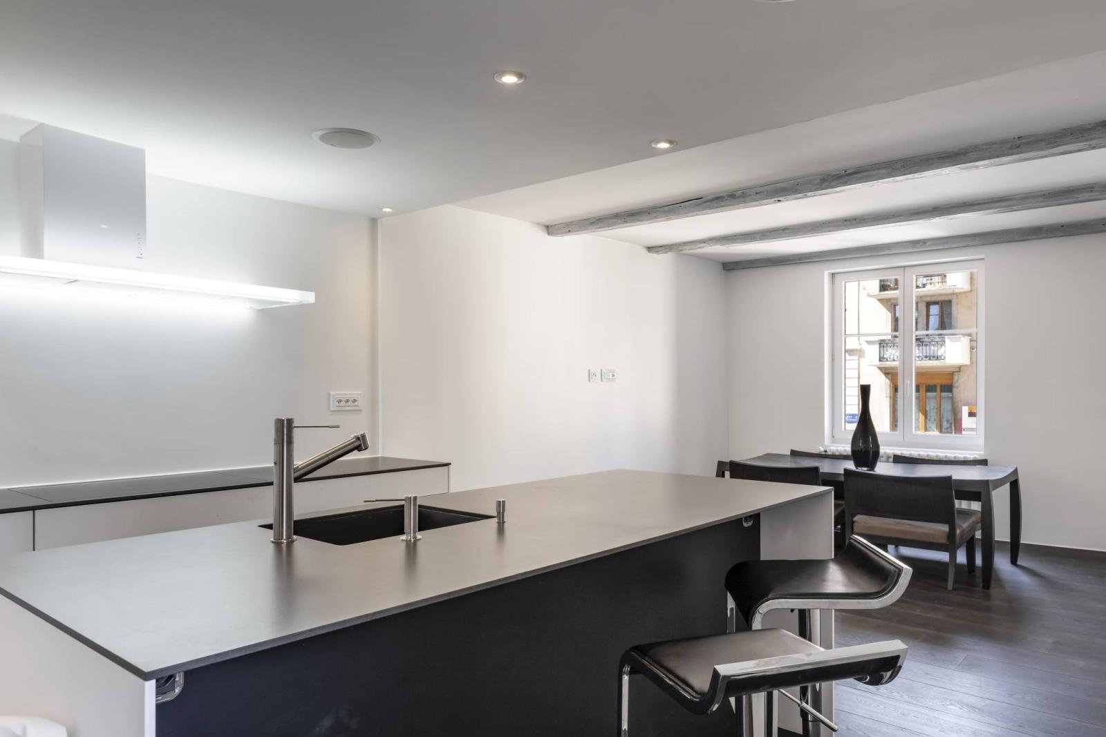 une cuisine ouverte sur le séjour, richement équipée