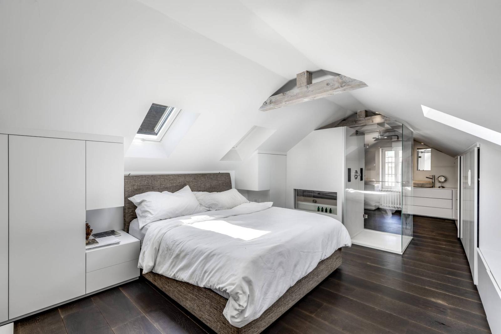 Etage 3 une grande suite parentale avec salle de bain comprenant une douche et armoires encastrées