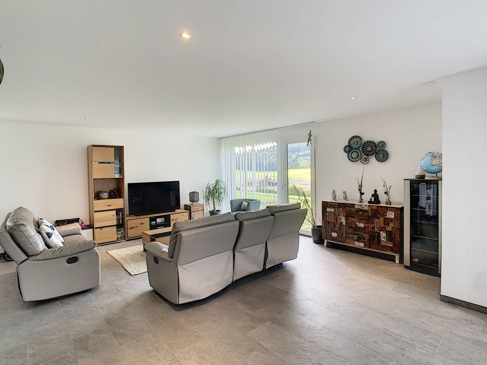 Construite en 2016, cette charmante villa contemporaine située sur la commune du Gibloux, orientée plein sud avec vue dégagée, bénéficie d'un environnement calme et verdoyant, en bordure de terrain agricole. Elle offre 206 m² de surface utile dont 161 m² habitables, réparties sur 2 niveaux. Implantée sur une belle parcelle de 648m², elle vous séduira par sa luminosité et ses volumes.
