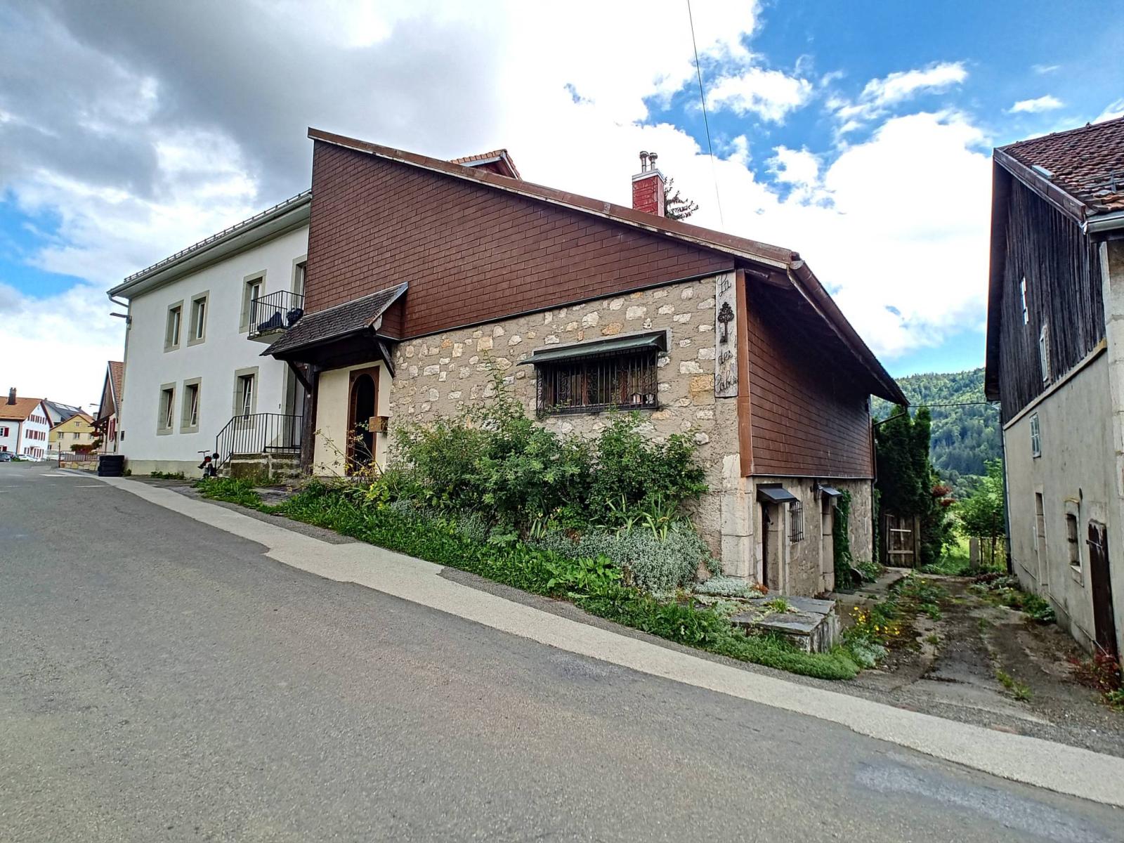 Rez supérieur: - Entrée avec cave - Second salon avec poêle - Chambre - Grande pièce communicative