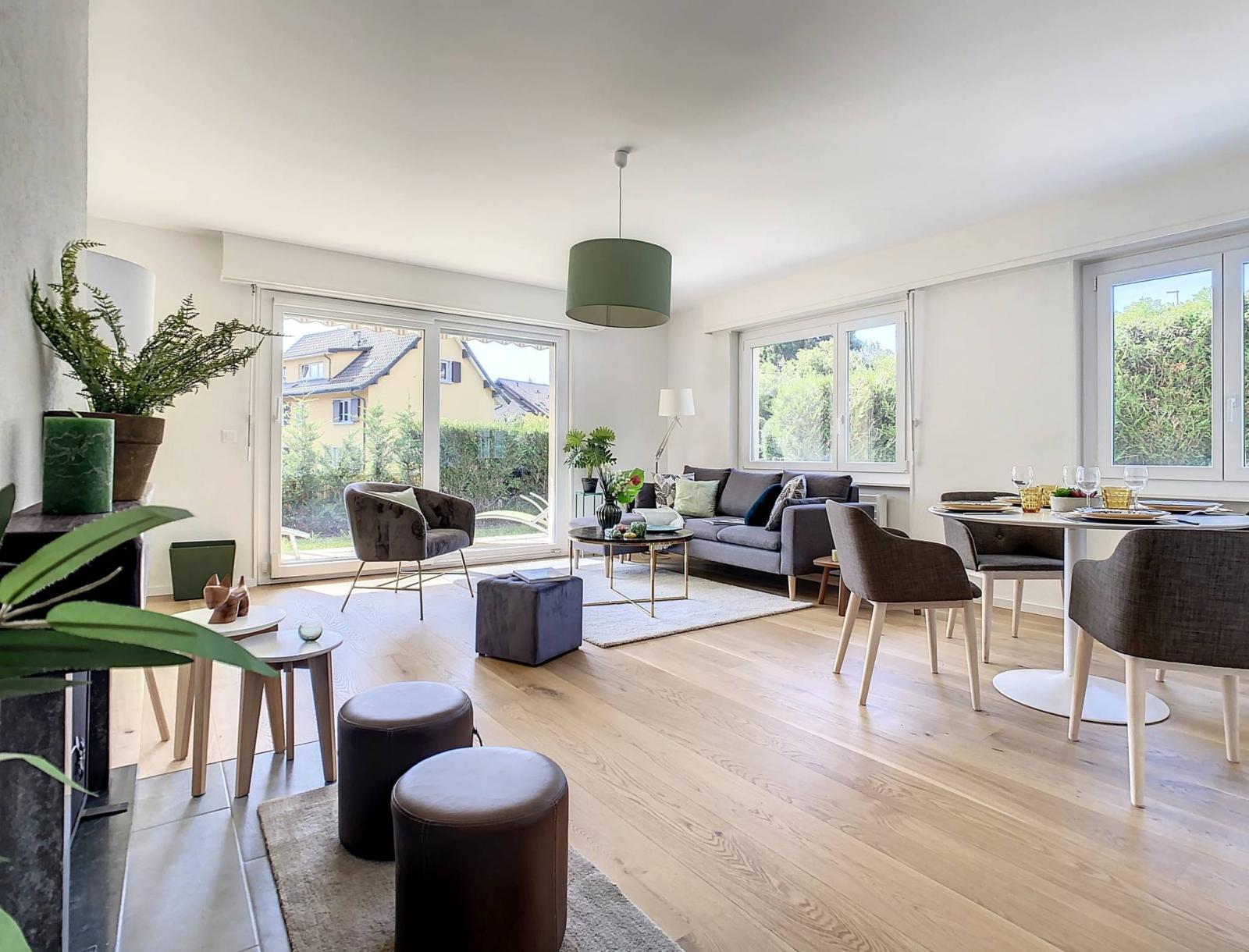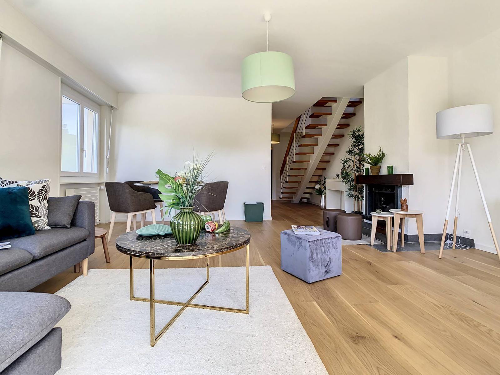 L’appartement a fait l’objet d’une rénovation intégrale et les aménagements intérieurs sont sobres et soignés, mêlant harmonieusement des matériaux esthétiques et actuels.