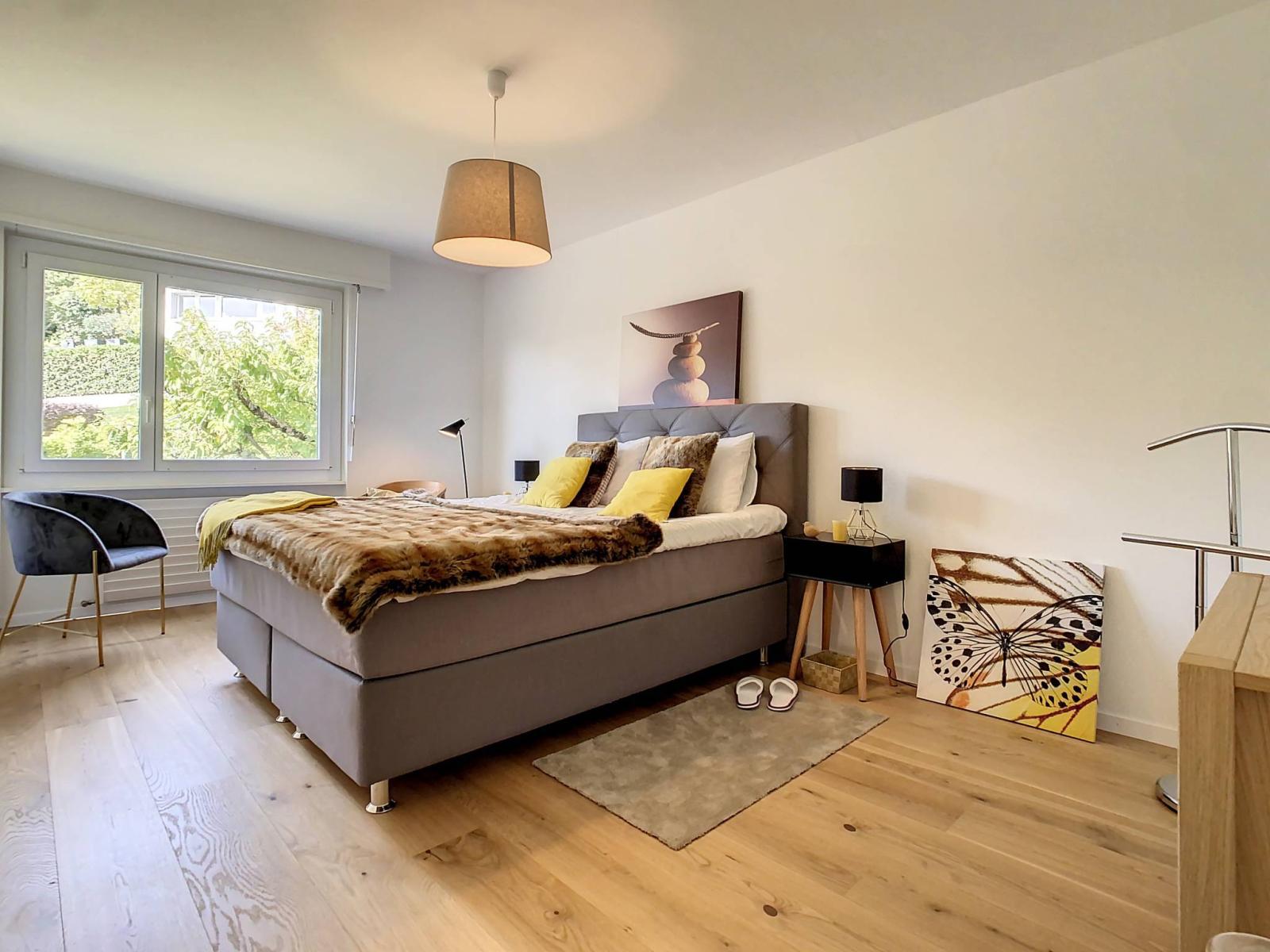 Disponible de suite, l’appartement comprend une grande cave ainsi qu’un box fermé en souterrain en sus du prix.