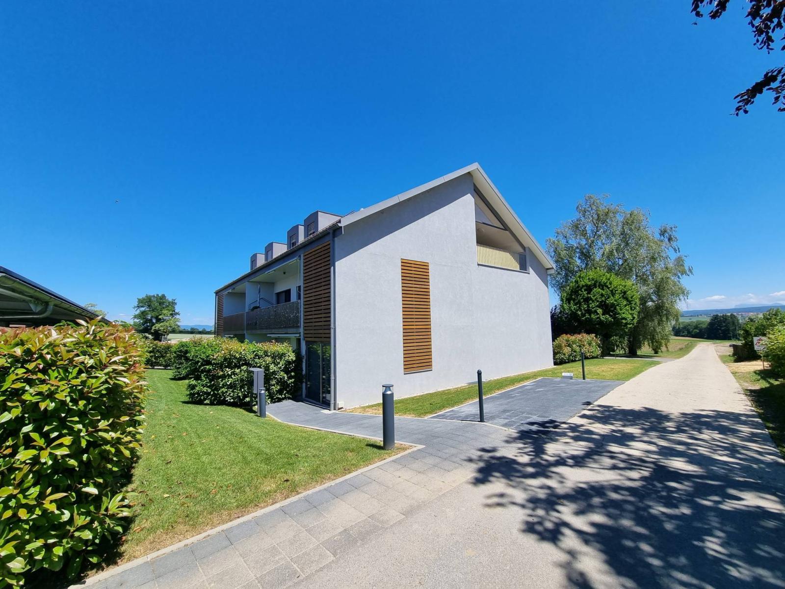 Situation villageoise calme et résidentielle, aux abords de Cossonay (Allens) et de toutes ses commodités (école; culture; transports; commerces; pharmacies..) , c'est un joli 3.5 pièces atypique et moderne (92.5 m² pondérés) que nous vous proposons de découvrir.Il est en pignon, sur la moitié de l'étage et donc ouvert sur 3 côtés.