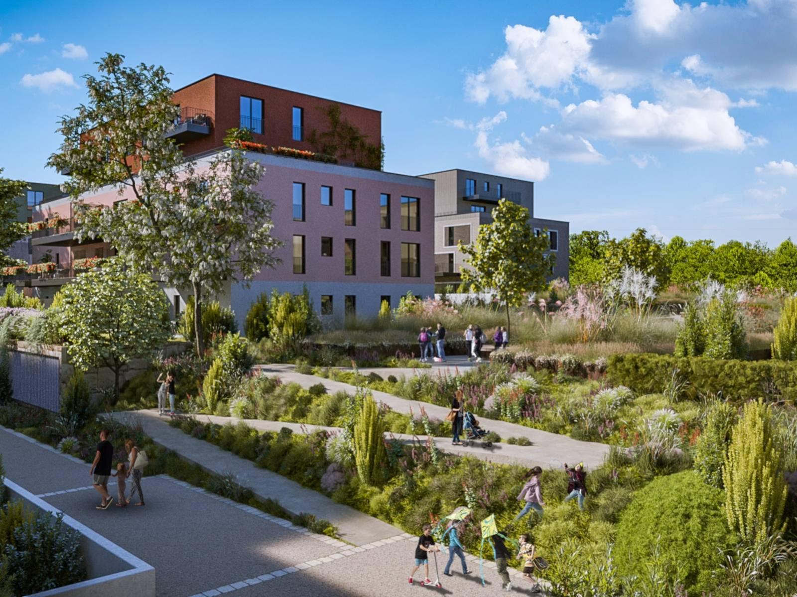 Vos avantages : - Aménagements intérieurs modernes et de qualité, finitions au gré du preneur - Jardins privatifs, terrasses ou grands balcons - Succession d’espaces en gradins engazonnés et arborés - Place de jeux en bois - Site entièrement accessible par des chemins et des rampes - Parking visiteurs en surface - Parking souterrain voitures, motos et vélos