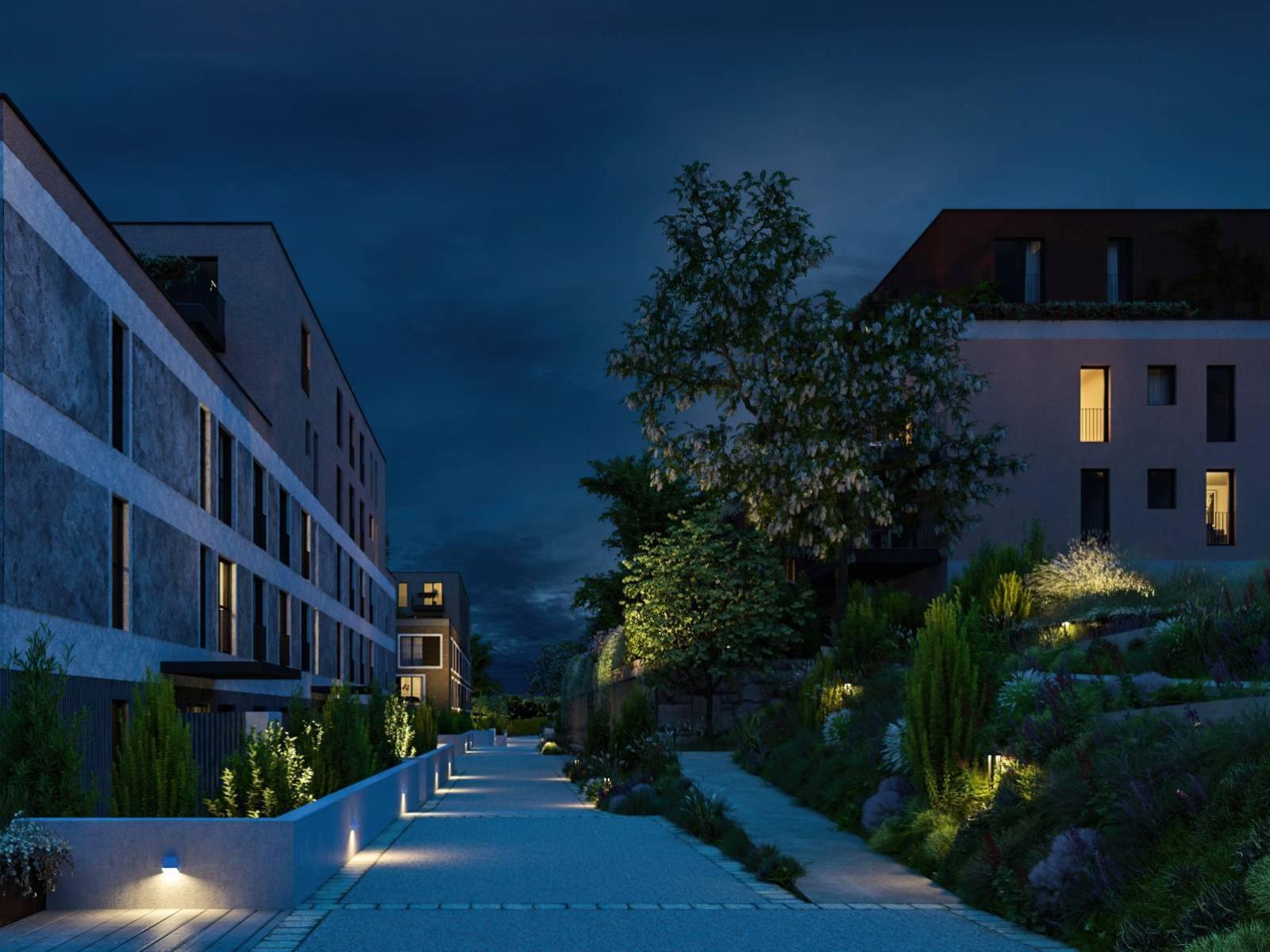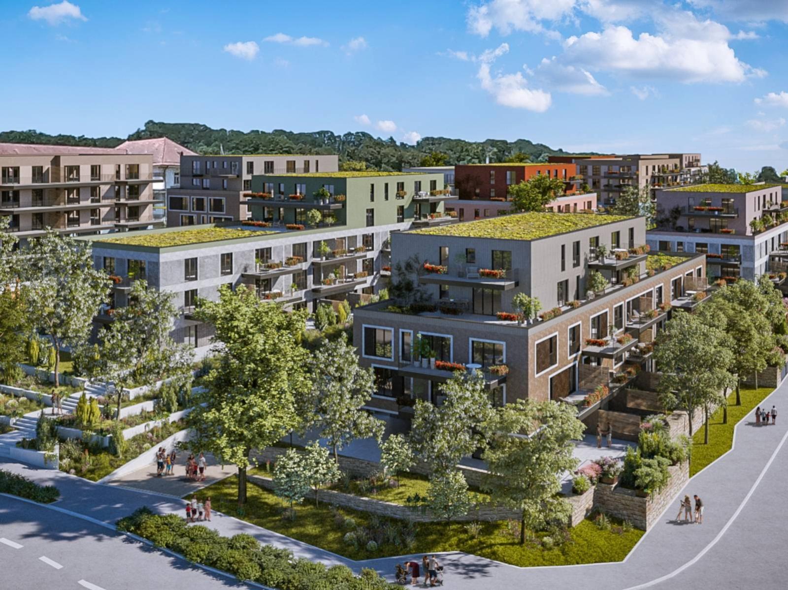 Vos avantages : - Aménagements intérieurs modernes et de qualité, finitions au gré du preneur - Jardins privatifs, terrasses ou grands balcons - Succession d’espaces en gradins engazonnés et arborés - Place de jeux en bois - Site entièrement accessible par des chemins et des rampes - Parking visiteurs en surface - Parking souterrain voitures, motos et vélos