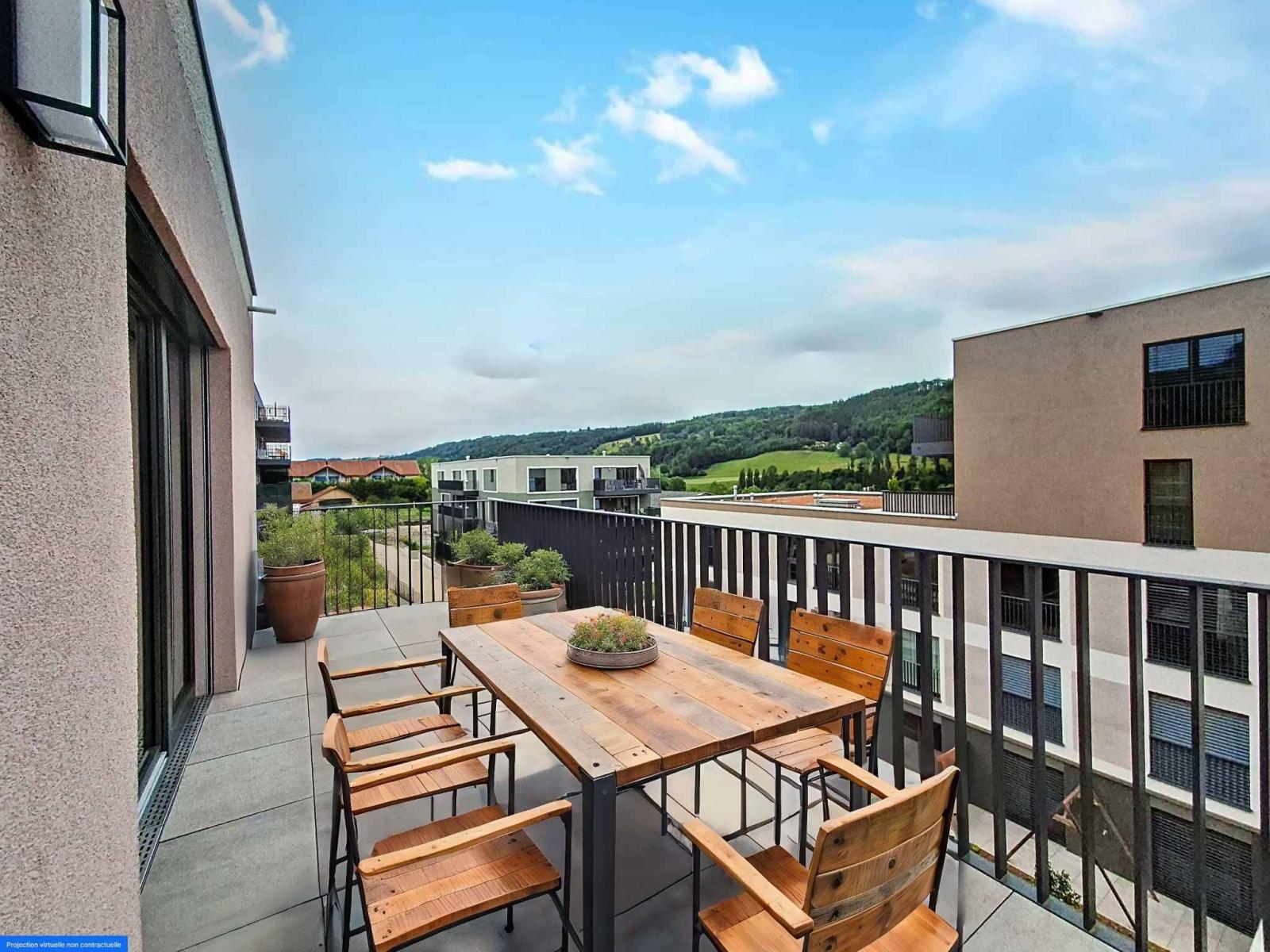 Vos avantages : - Aménagements intérieurs modernes et de qualité, finitions au gré du preneur - Jardins privatifs, terrasses ou grands balcons - Succession d’espaces en gradins engazonnés et arborés - Place de jeux en bois - Site entièrement accessible par des chemins et des rampes - Parking visiteurs en surface - Parking souterrain voitures, motos et vélos