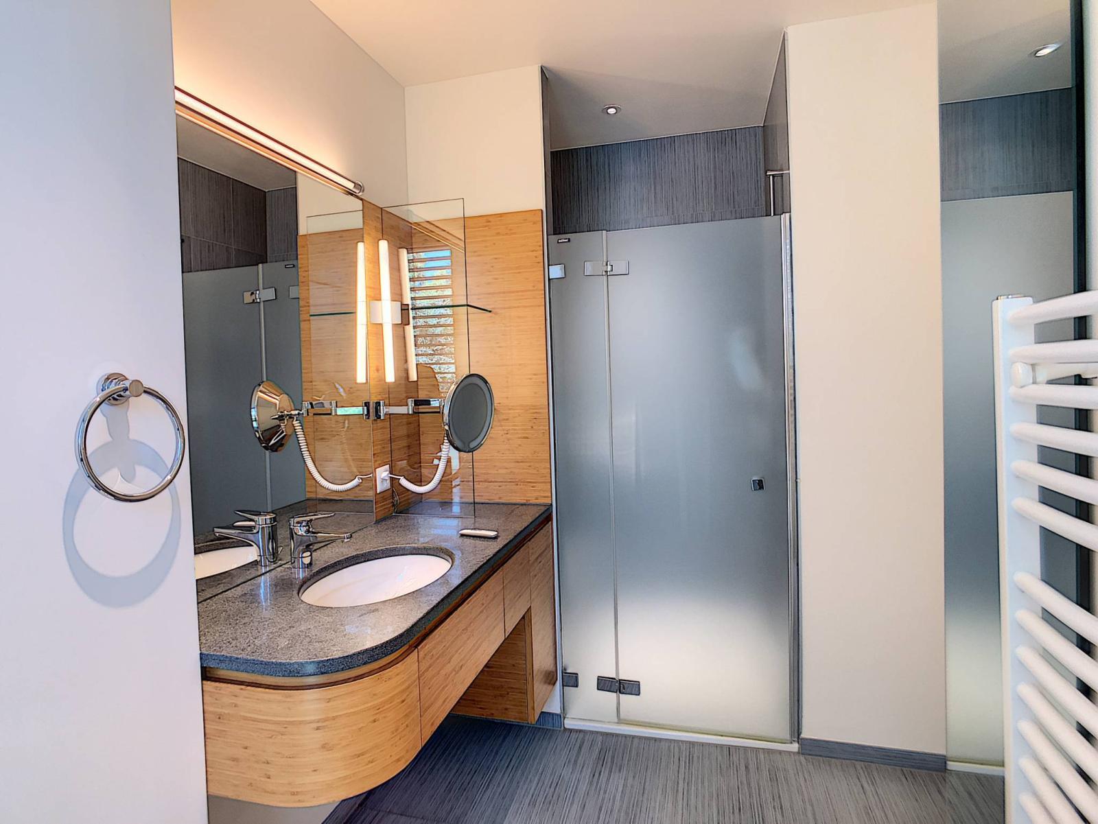 Il bénéficie de très belles finitions, de grandes pièces et de beaucoup de rangements. Ses grandes baies vitrées vous offriront une très grande luminosité ainsi qu'une belle vue sur le lac et les Rochers de Naye.
