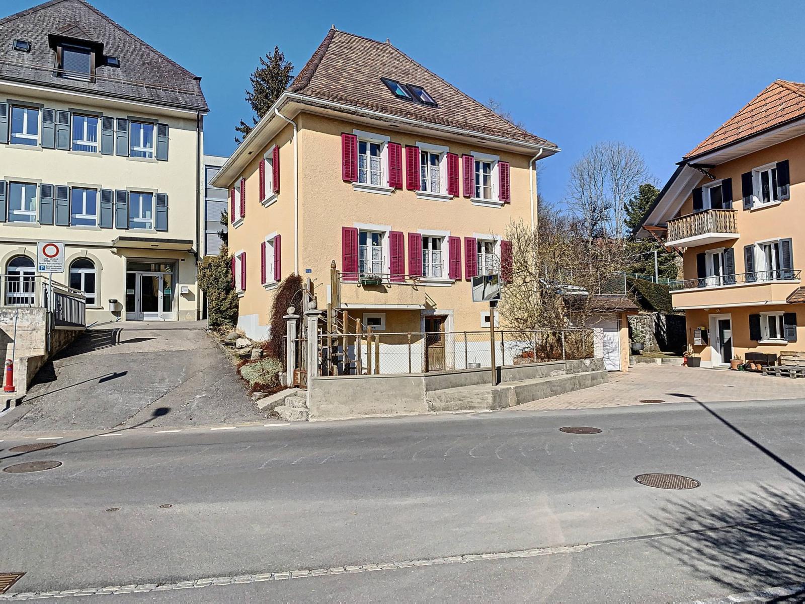 Située dans le quartier du Bourg, cette charmante maison villageoise de 5.5 pièces, bâtie en 1870 et rénovée en 1998, dispose d'une surface utile d'environ 180 m² dont 140 m² habitables répartis de la manière suivante :
