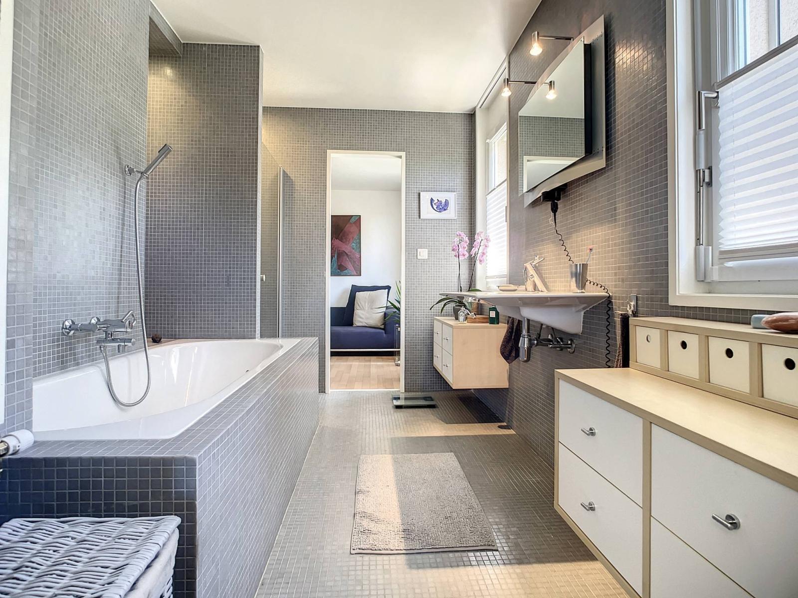 Située dans un quartier calme et résidentiel, Barnes Suisse SA a le plaisir de vous présenter cette charmante maison jumelée, idéale si vous recherchez de la tranquillité et une qualité de vie supérieure. Les transports publics à proximité vous permettront de vous déplacer aisément. Elle vous offre du confort dans un environnement convivial tout en restant proche des commodités.