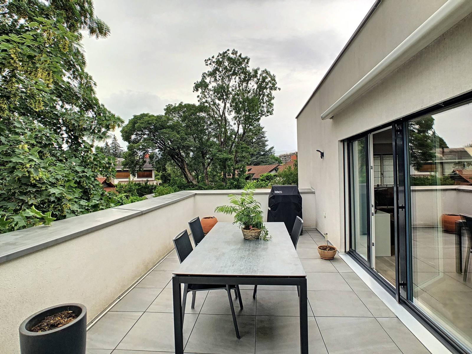 Bel et lumineux attique de 4 pièces, situé dans une petite copropriété très privative, construite en 2014, et labellisée Minergie.