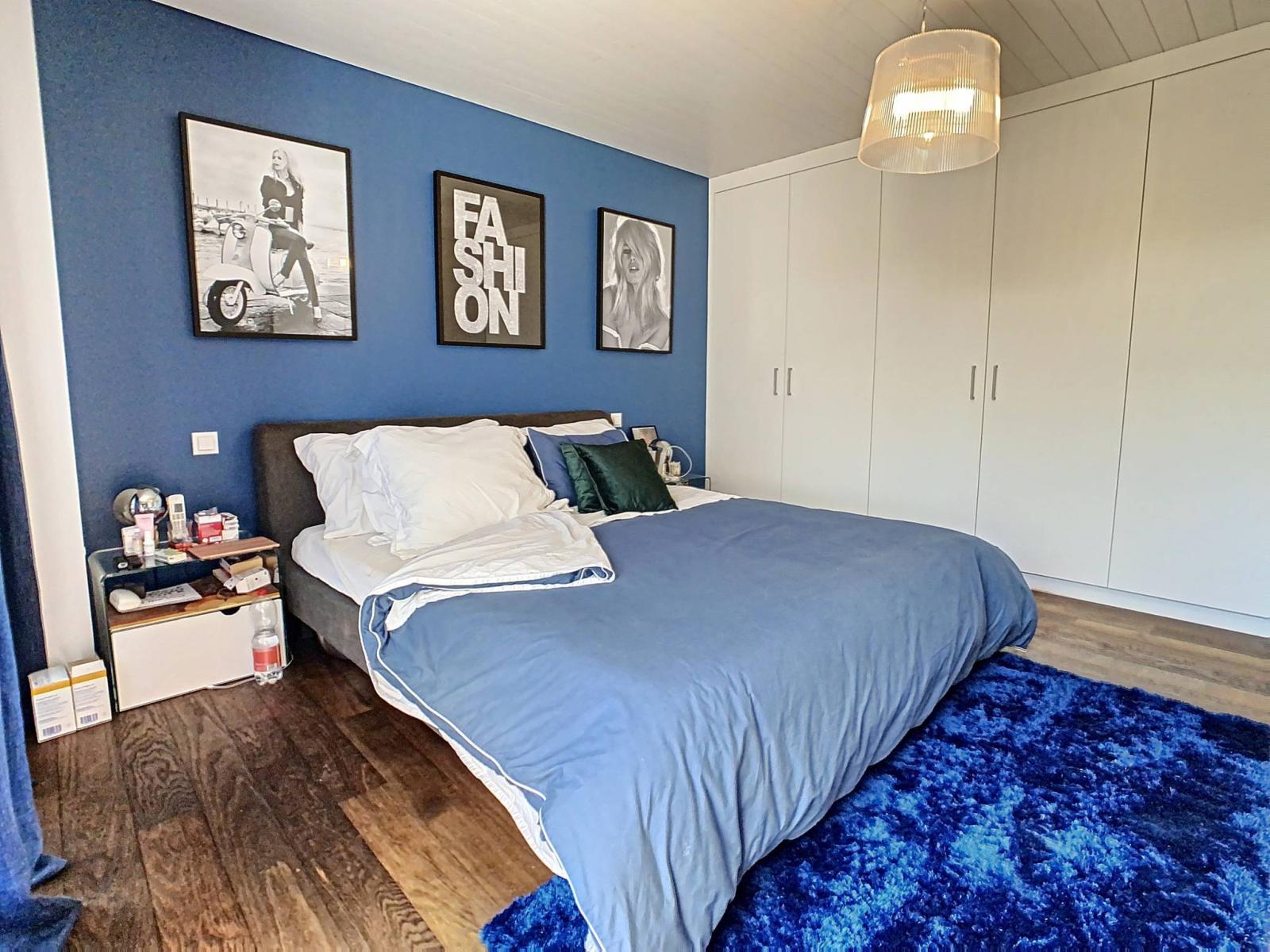 2 chambres à coucher avec armoire, une salle de douche et une une agréable suite parentale avec armoires, salle de bains (bains + douche) et terrasse occupent le 1er étage.