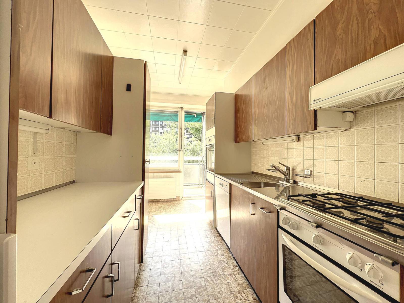 La partie jour se compose d’un généreux hall d’entrée agrémenté d’un vestiaire, d’un vaste séjour s’ouvrant surune loggia ainsi que d’une cuisine fermée avec espace repas et accès à la loggia.