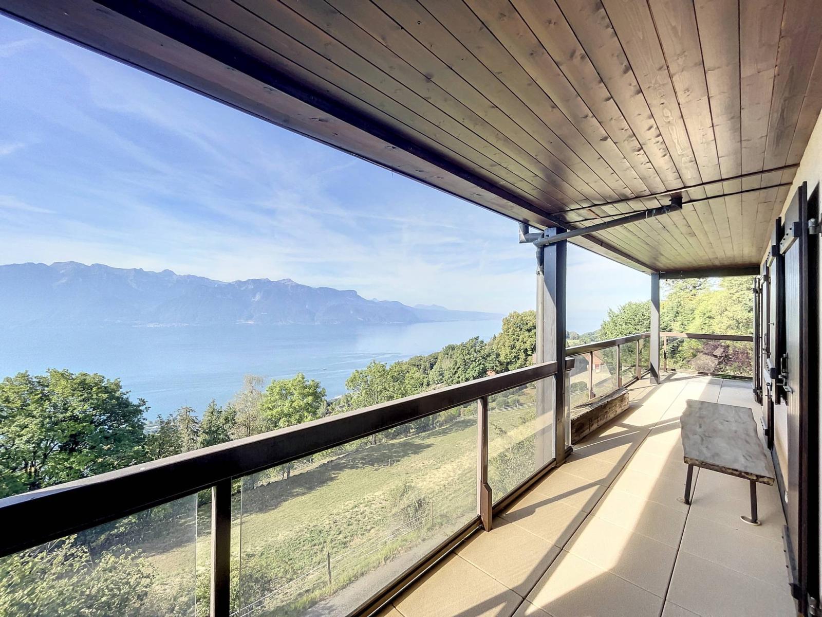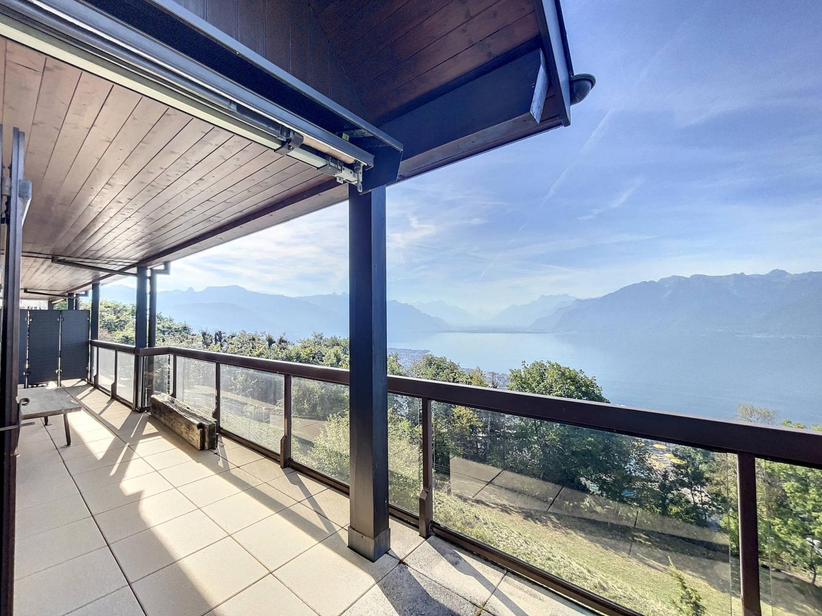 Il bénéficie d'environ 85 m² habitables, avec un balcon d'environ 30 m² et jouit d'une splendide vue sur le lac Léman et les montagnes.