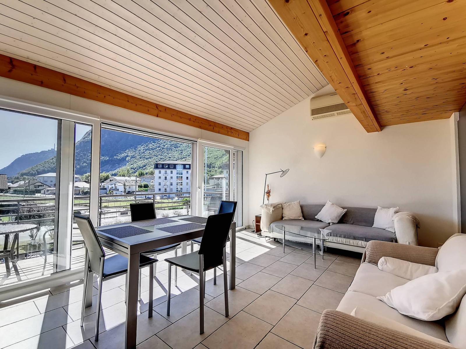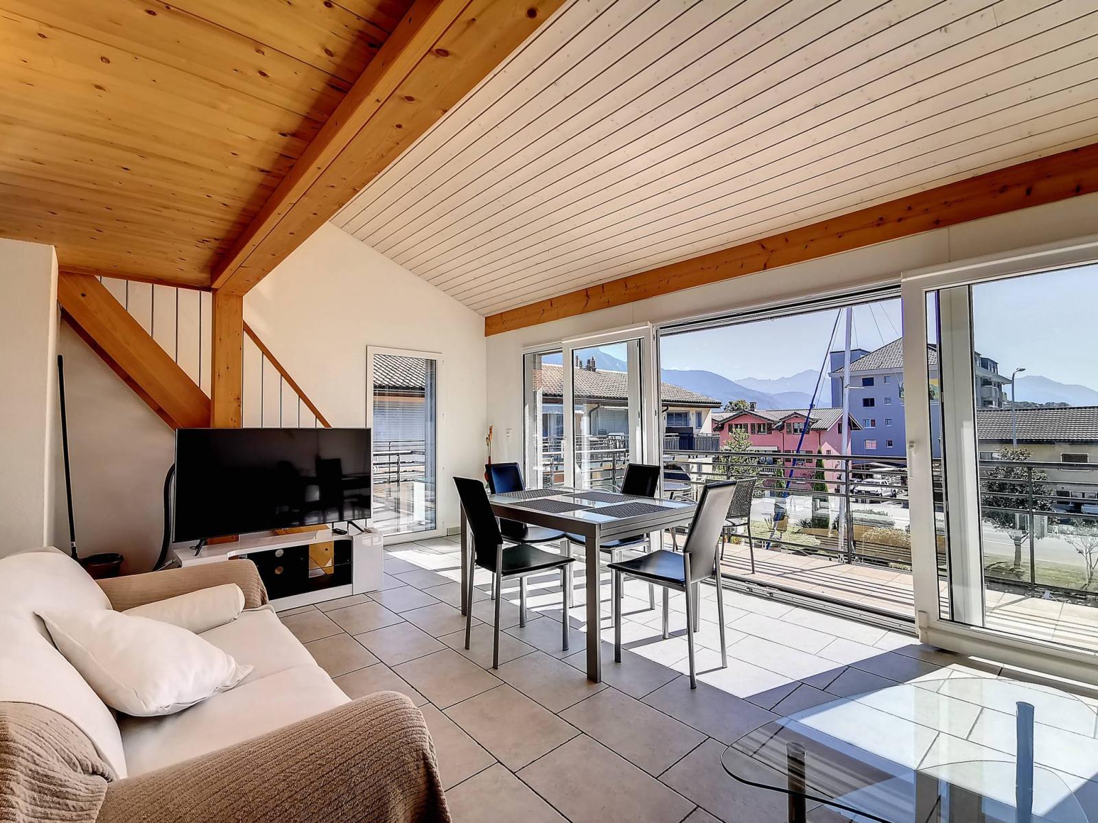 Ce spacieux appartement de 2,5 pièces + mezzanine est situé au 2ème étage et combles de la réputée Marina du Bouveret/Port-Valais. Il dispose d'environ 85 m² habitables et est climatisé.