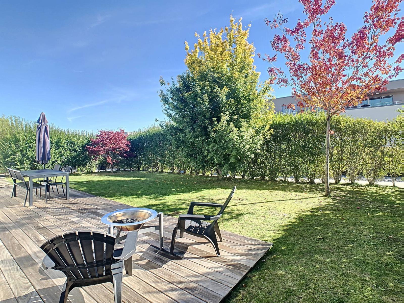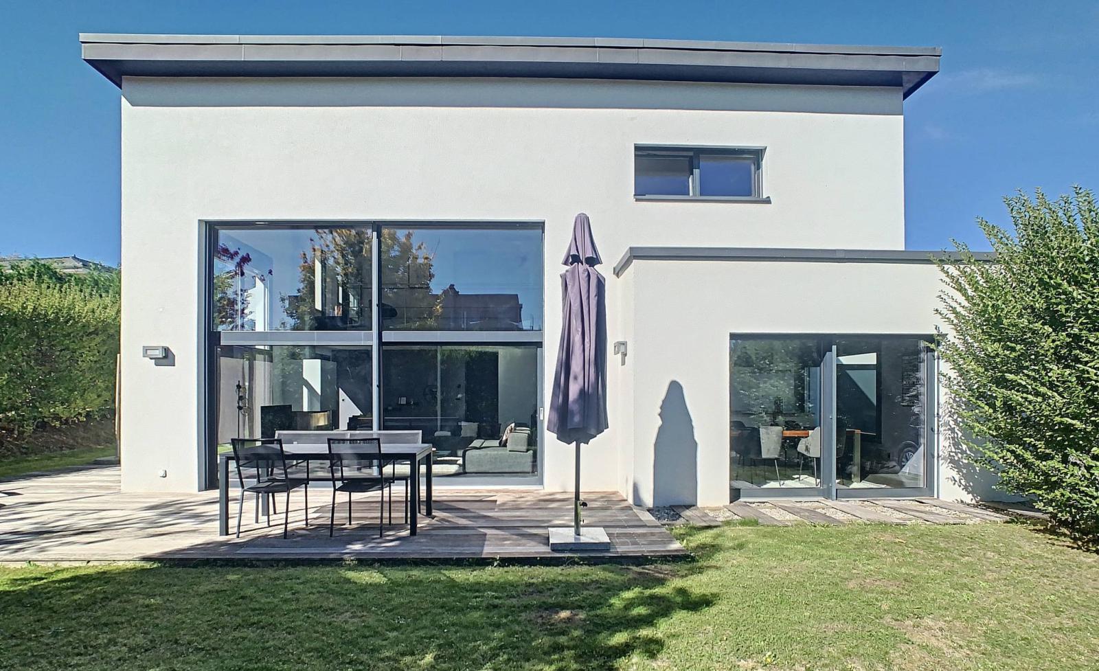 La villa est agrémentée de stores électriques, d'un petit balcon et d'un jardin parfaitement entretenu. Un réduit extérieur de 3.6m² ainsi que quelques places de parc extérieures complètent ce bien. Un permis de construire pour un agrandissement de 24m² a été délivré pour cette propriété.