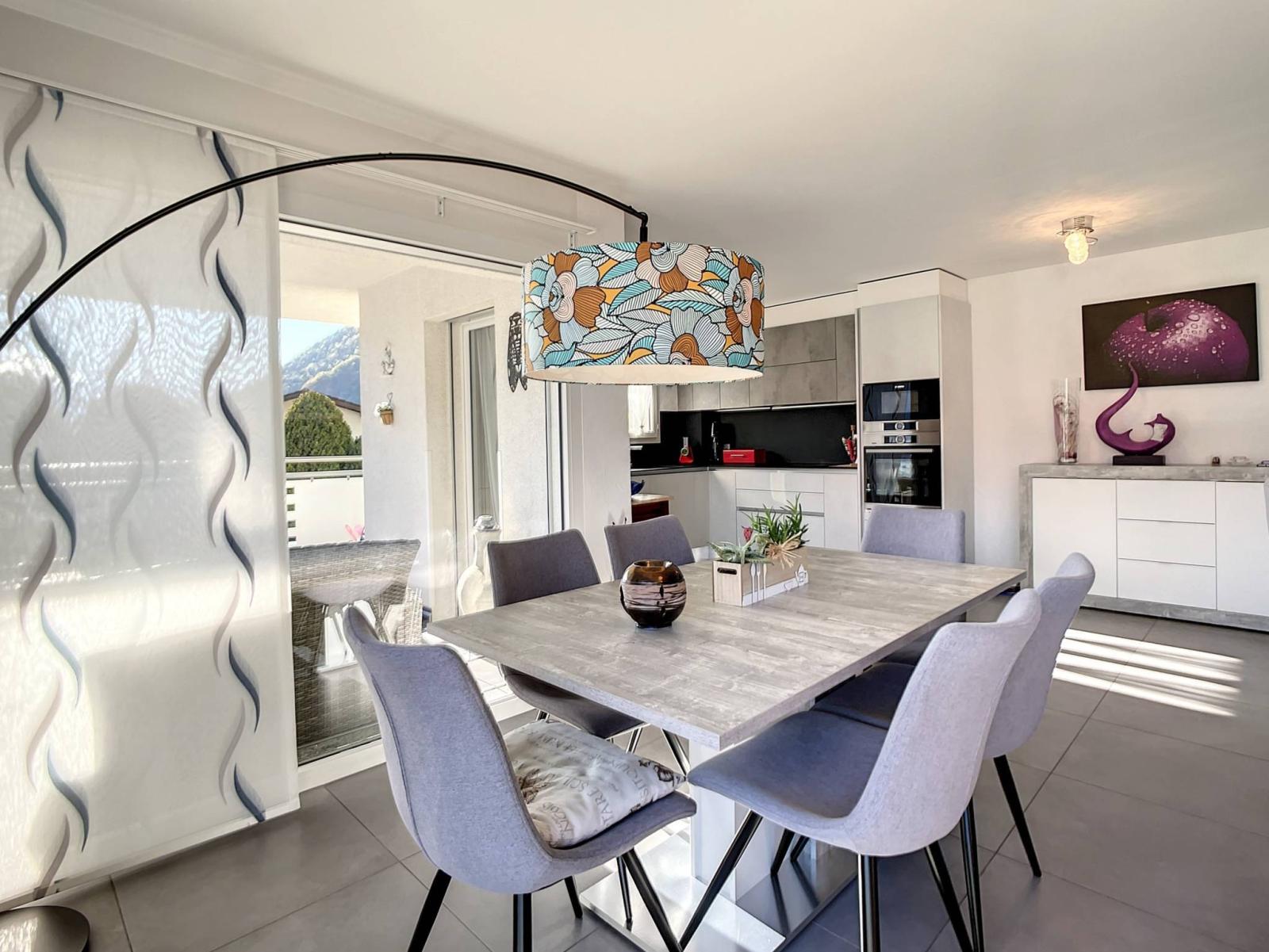 Sa spacieuse pièce à vivre, avec accès à la grande terrasse de 24.80m2, et sa cuisine ouverte moderne entièrement rénovée en 2020 offre un espace convivial et chaleureux.