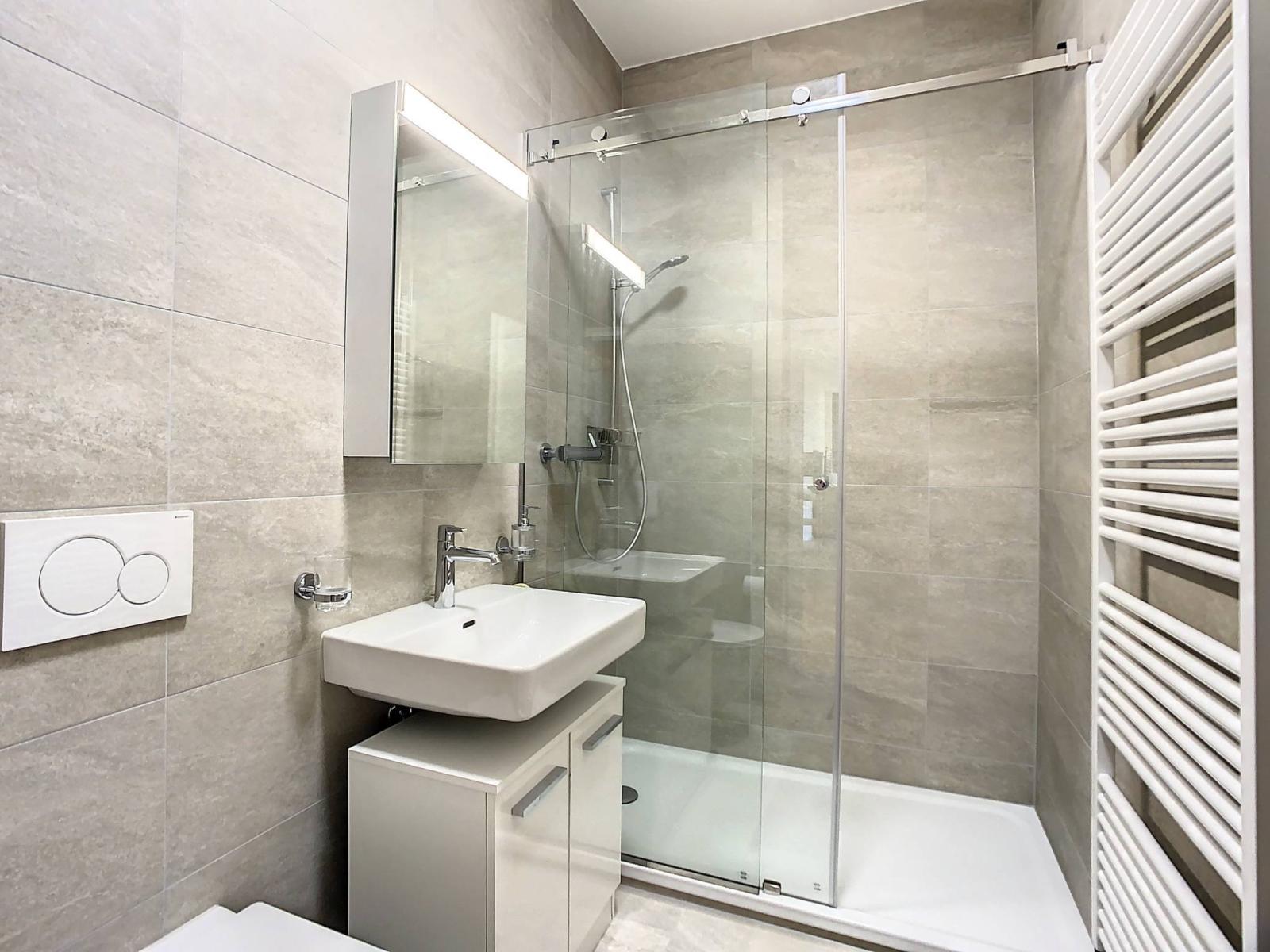 - une salle de bain avec douche à l'italienne et colonne de lavage