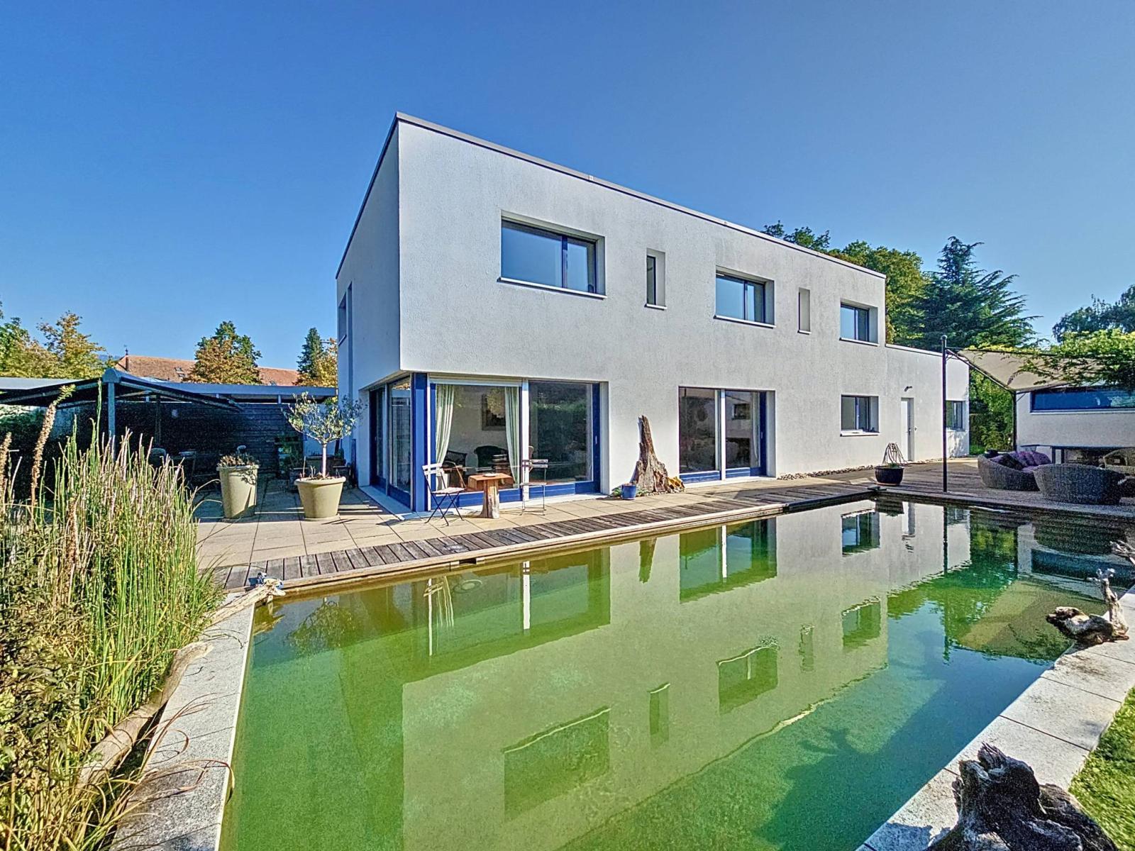 Cette maison est implantée sur une belle parcelle entretenue de 989 m², proposant une terrasse dallée accompagnée d'une splendide piscine naturelle avec son bassin. Une annexe de rangement avec une cabine de sauna et un potager agrémentent les extérieures. De plus, une terrasse de 50 m², accessible depuis le 1er étage, jouit d'une surface spacieuse et bien orientée pour profiter d'agréable moment entre amis ou famille.